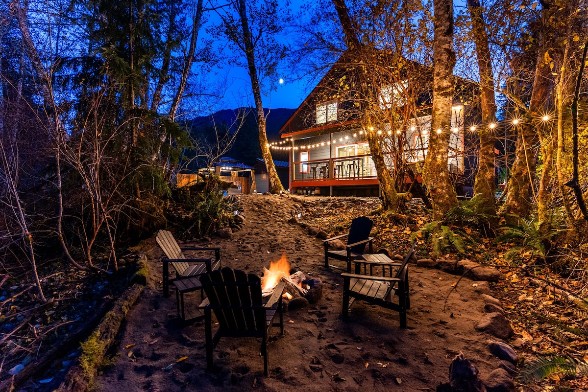 Mt Rainier! Lakeside Creekside! Hot Tub! Firepit!