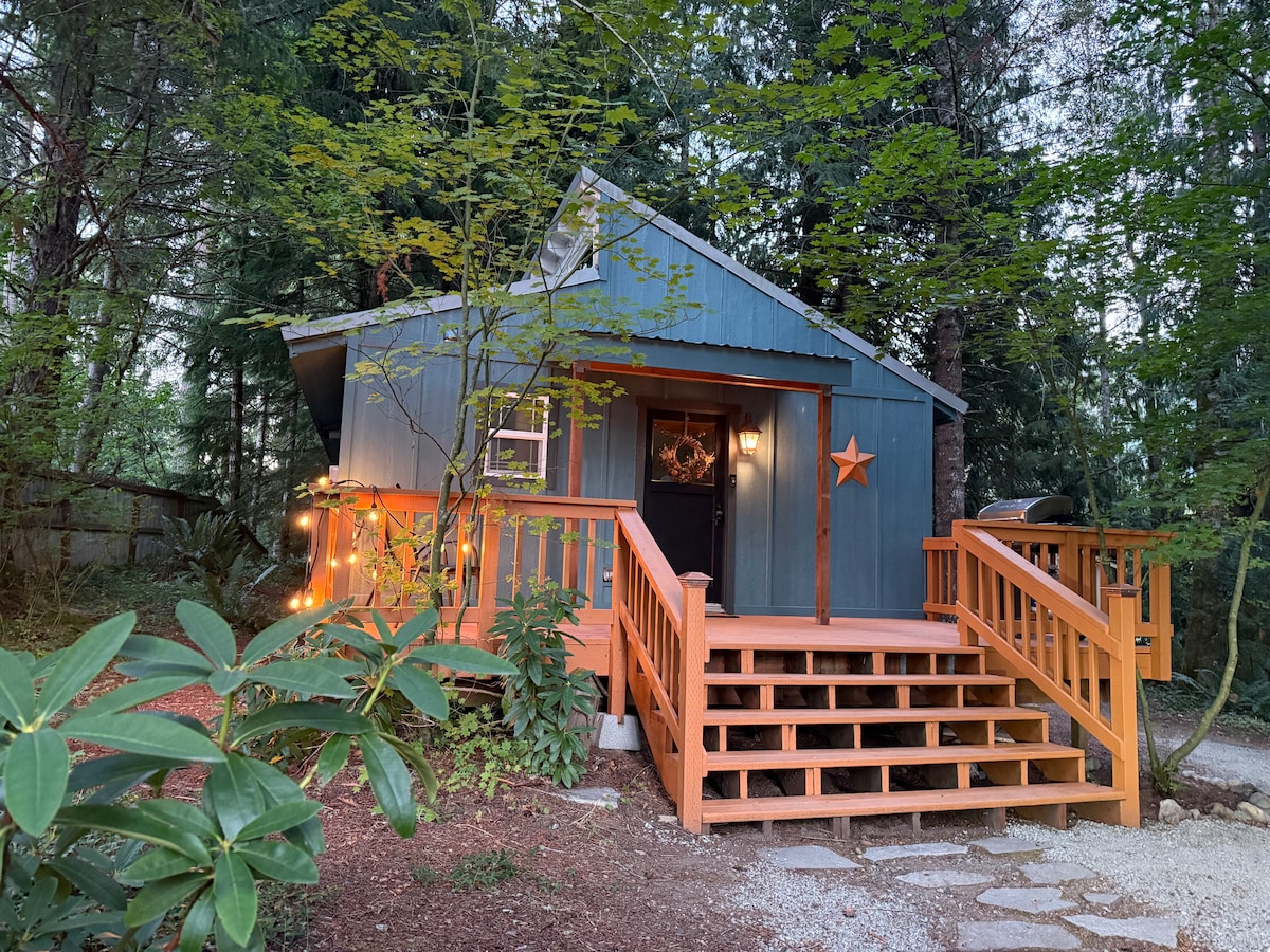 🌲 Snapped Twig Cabin: Riverfront Magical Stay Hidden riverfront cabin on our 30-acre LGBTQ-owned farm, just 25–45 min from Mount Rainier & Crystal Mountain. Fall & Winter stays welcome (heat included). ⭐ 1,000+ five-star reviews. ✨ Features: → 2 forest hot tubs → Solar power → Private bathrm & kitchen → Firepit, s’mores & coffee bar → Private river & creek w/ 3 beaches → Farm stand + visit piglets, goats & chickens 🐖 🔥 Cozy up next to river. Cheers!