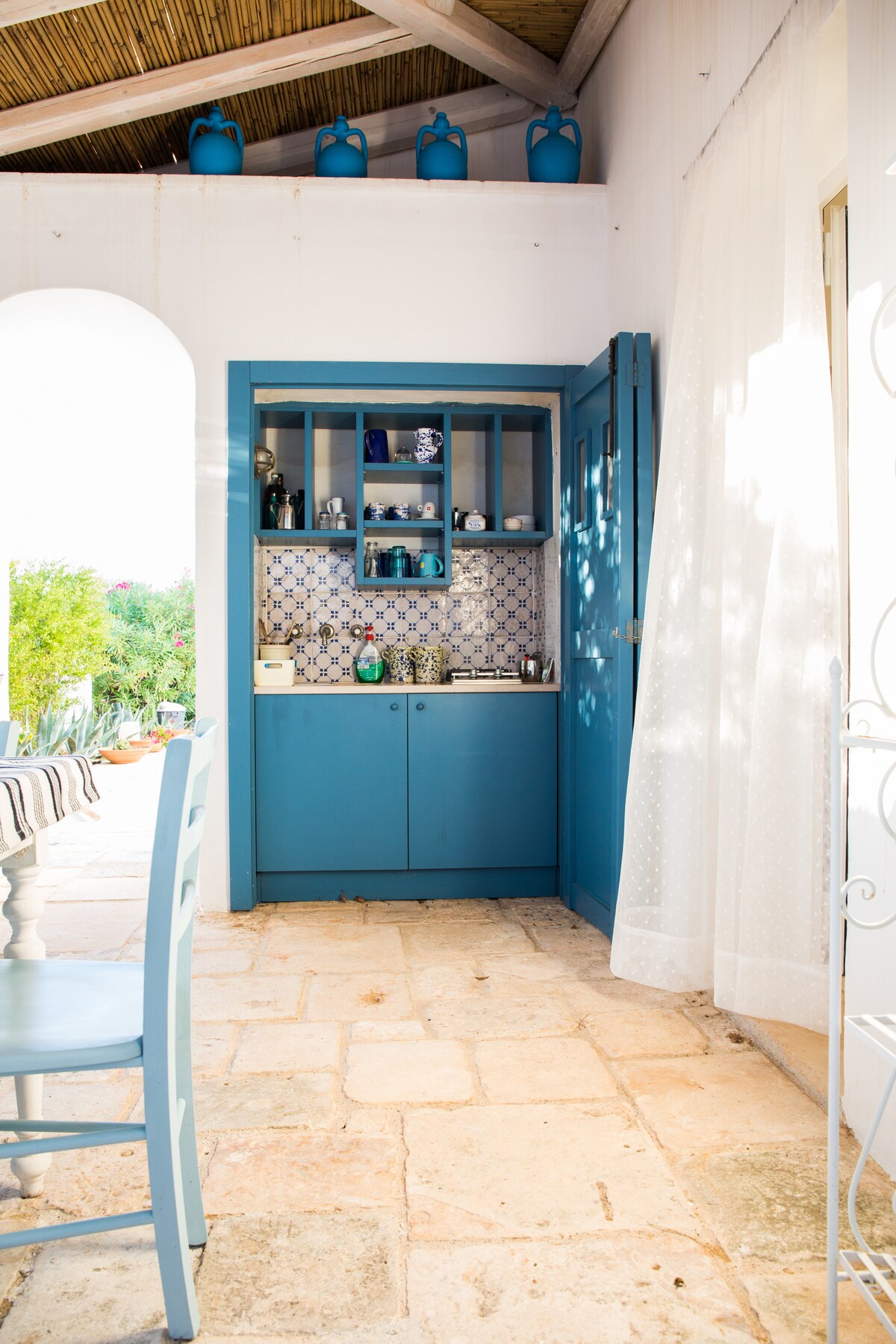 CIS: BR07401291000000188 USt-IdNr.: IT074012B400033730 Erleben Sie das magische Gefühl, sich zwischen Vergangenheit und Gegenwart zu befinden: Es ist ein historisches Haus! Die antiken Böden und Steinwände bilden den Hintergrund für eine Umgebung, die mit Designobjekten, alten Keramiken und lokalen Möbeln eingerichtet ist. Die große private Terrasse mit Solarium und warmer Dusche wird Sie begeistern: Sie können sich bei einem Glas Wein bei Sonnenuntergang entspannen, die Sonne auf bequemen Liegen genießen oder ein Abendessen in einer magischen apulischen Atmosphäre zubereiten.