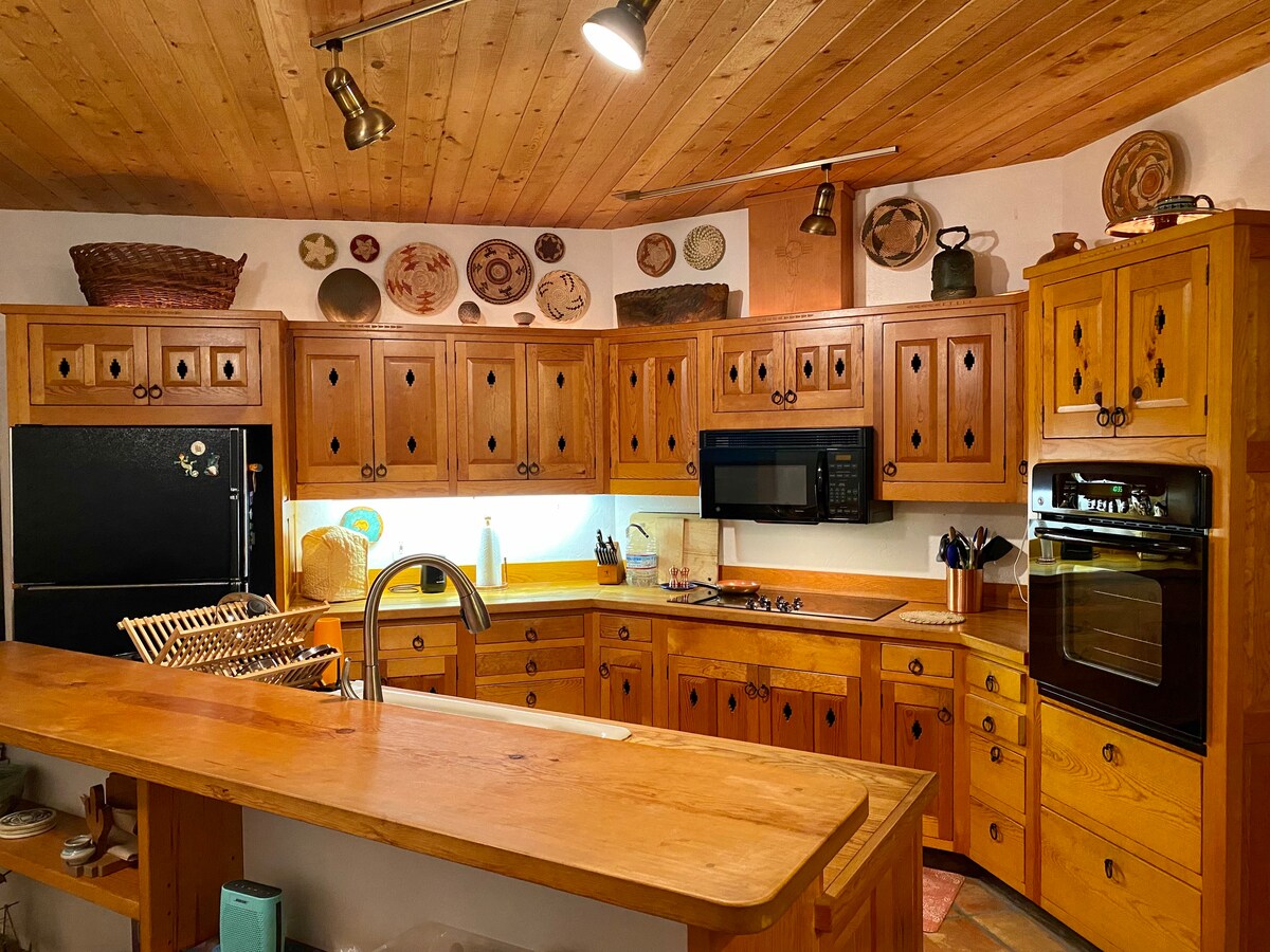 Genieße die Sehenswürdigkeiten und Klänge der Sonora-Wüste in unserem Haus im Adobe-/Santa-Fe-Stil auf 3 Hektar roher Wüste nordwestlich von Tucson. Wir sind 10 Minuten von allem entfernt, aber oh so weit weg. Öffne die riesigen Fenster und schlafe und wache mit den Geräuschen der einheimischen Wüstenbewohner auf – Rotluch, Peccaries, Kojoten, Eulen, Wachteln, Kolibris. Mache eine Wanderung auf den nahegelegenen Wasson Peak, spaziere auf den vielen Feldwegen und Pfaden in der Umgebung oder genieße eine Radtour, um die in Tucson heimische Flora aus nächster Nähe zu erleben.