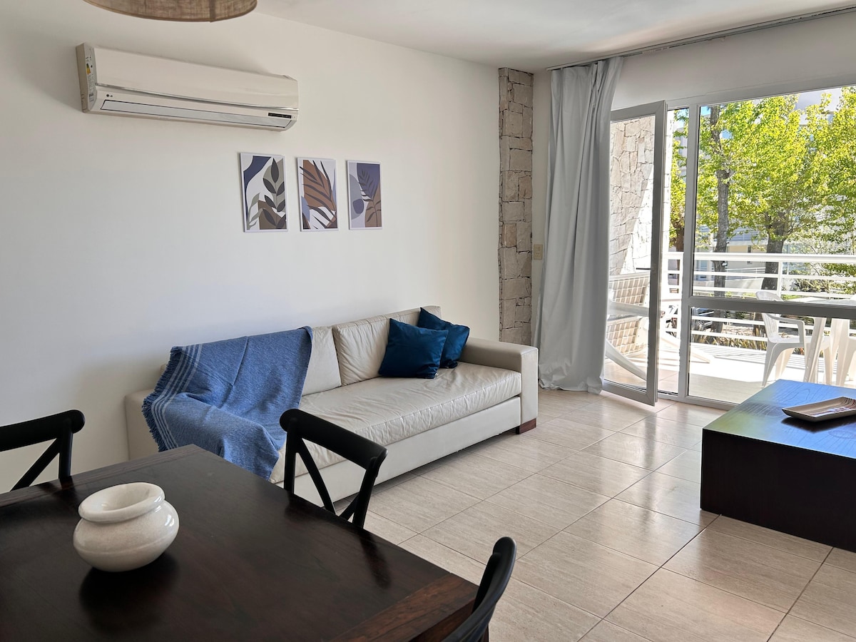 Departamento 2 ambientes super amplio, cuenta living comedor, con cocina completa, WIFI Privado, Tv en cada ambiente, calefacion losa radiante, AAC y cochera. Vas a tener todo al alcance de la mano ya que se ubica a solo 50 mts de la baja al Mar y 4 cuadras del centro de Carilo. Para 2 personas nuestro depto tiene todo lo que necesitas, super luminoso con vista abierta a la piscina del complejo.