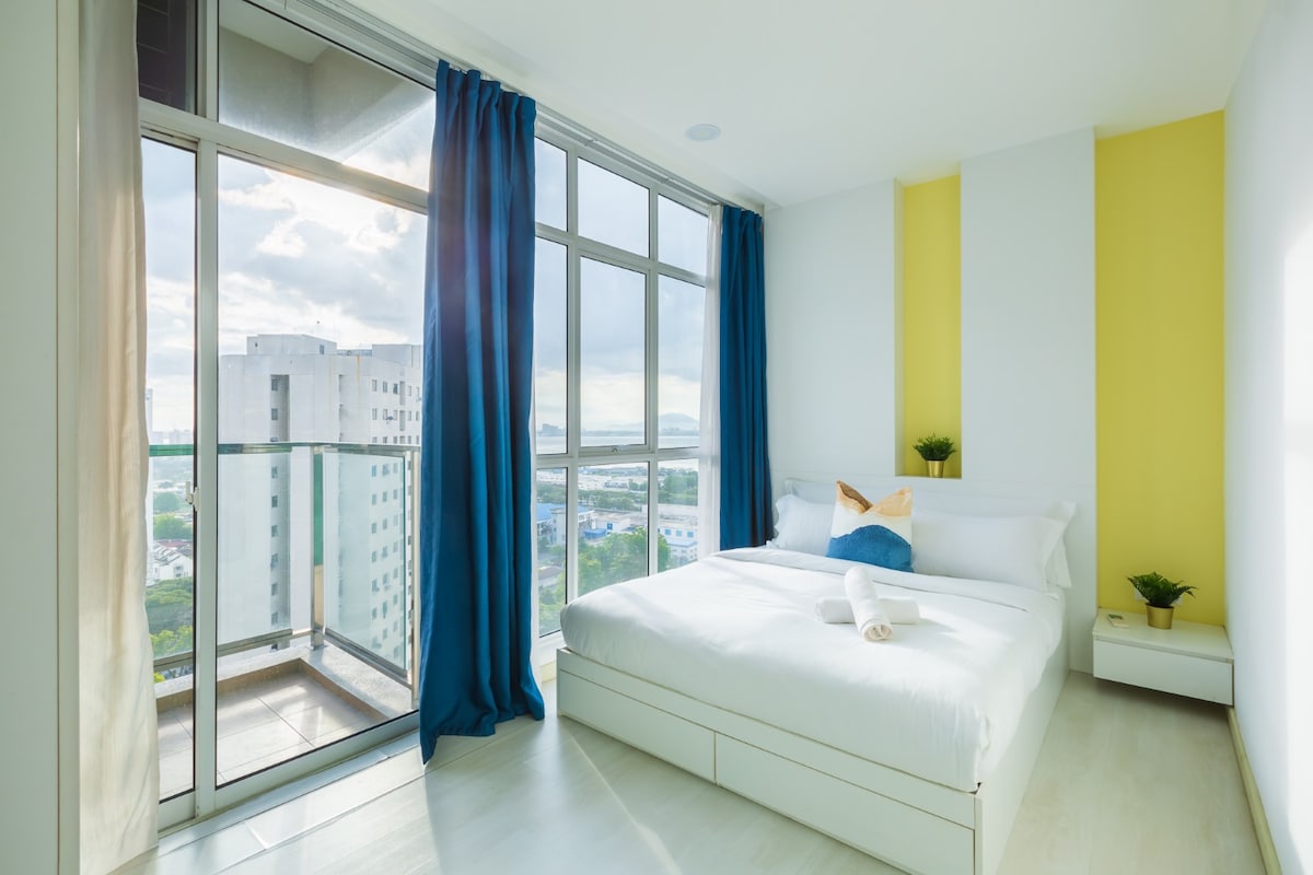 Maritime Suiten von Comfy ★ Panoramablick auf das Meer ★ bei Sonnenaufgang ★ Blick auf die Penangbrücke ★ High Floor ★ 5 Sterne Superhost Comfy Homestay Team ★ Nächstgelegene Duplex mit Meerblick zum UNESCO-Weltkulturerbe-Kernzone • 120 Quadratmeter • 1 privater Parkplatz • 300 Mbit/s WiFi • 30 Restaurants, Cafés, Pubs, Starbucks, Coffee Bean, FamilyMart, 7-Eleven, HappyMart befinden sich unter unserem Haus. • Voll klimatisiert • Tour-Pakete verfügbar. • 5 bis 10 Autominuten von Chew Jetty und der Altstadt, die zum UNESCO-Weltkulturerbe gehört, entfernt.