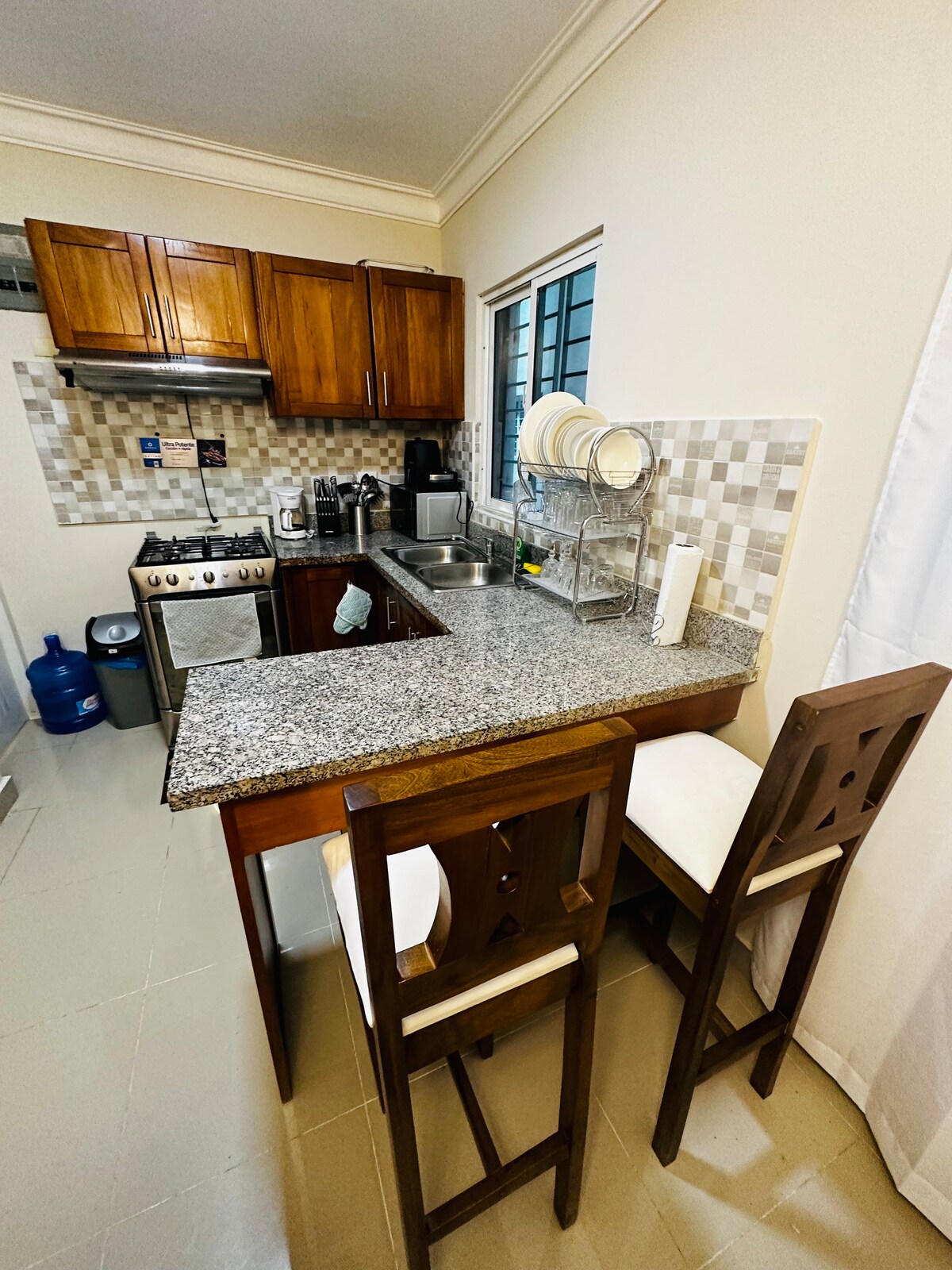 Dein perfekter Rückzugsort zum Entspannen und Arbeiten Genieße einen Raum, der Ruhe und Produktivität miteinander verbindet. Mit Arbeitsbereich und natürlichem Licht den ganzen Tag über findest du die ideale Atmosphäre, um dich zu konzentrieren oder Stress abzubauen. Sie befindet sich im Zentrum, in der Nähe von Krankenhäusern, Geschäften, Restaurants und Supermärkten. Nur 15-20 Minuten von Jarabacoa (Touristengebiet) und dem Flughafen Santiago entfernt. Keine KINDER Keine Haustiere (Wohngebiet).
