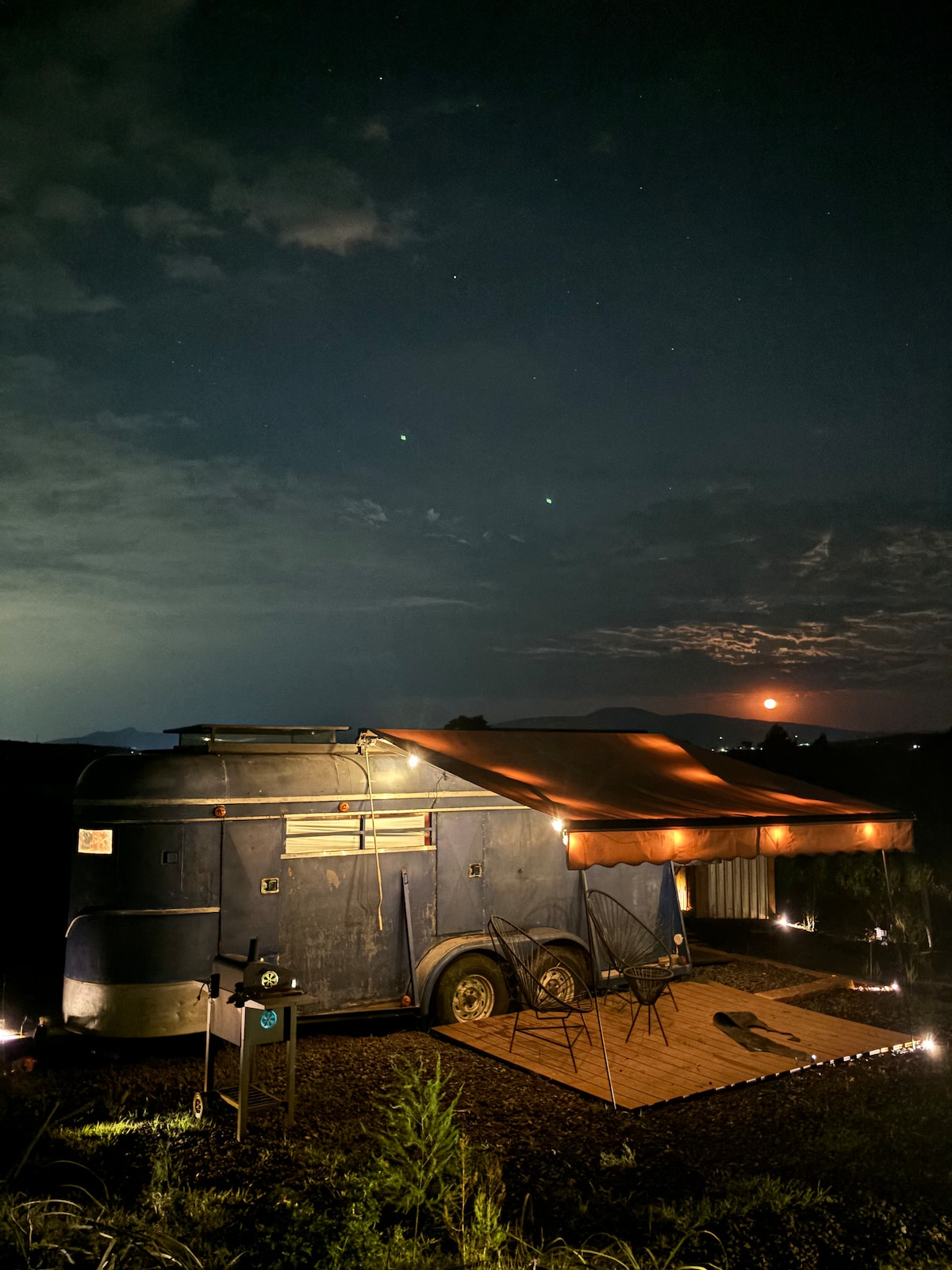 Glamping mit Kingsize-Bett, Bad, Whirlpool, großer Küche und eigenem Parkplatz ist eine luxuriöse und komfortable Unterkunftsmöglichkeit, die ein einzigartiges Campingerlebnis im Freien mit allen Annehmlichkeiten und Dienstleistungen eines Hotels von hoher Qualität bietet. Der Whirlpool bietet die Möglichkeit, sich zu entspannen und den Blick auf die umliegende Landschaft in einer privaten und komfortablen Umgebung zu genießen. Er verfügt über Warmwasser und Hydromassage. Sie verfügt über eine voll ausgestattete und private Küche.