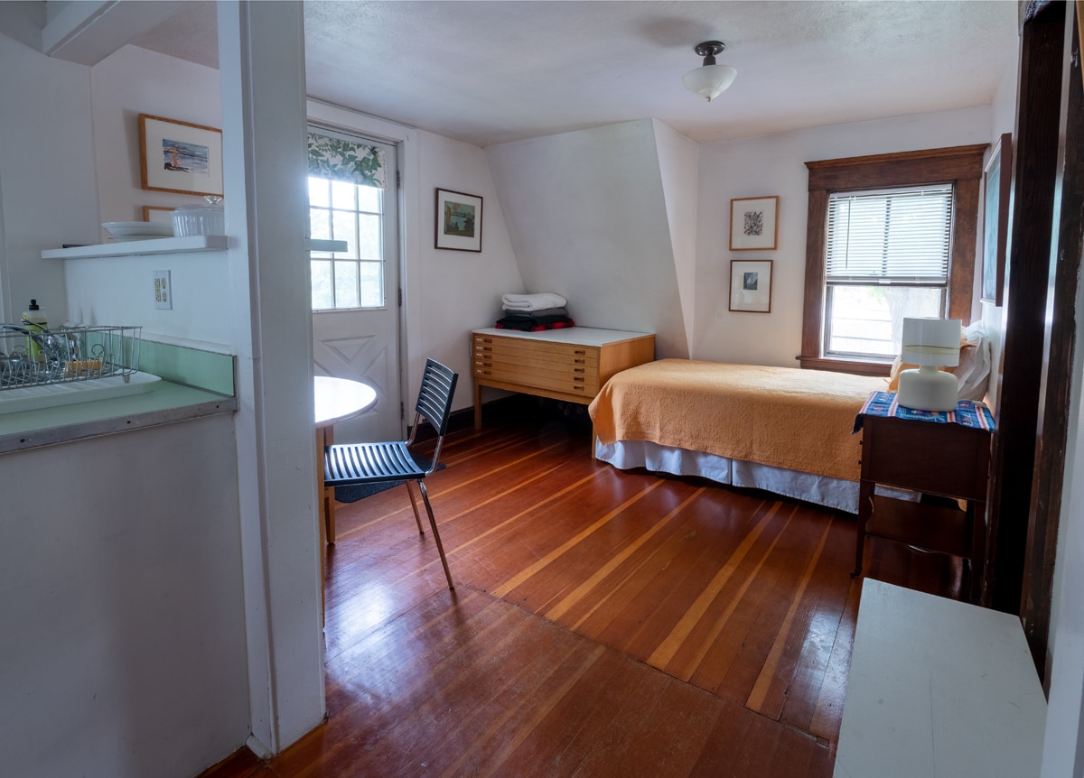 Dieses geräumige Studio-Apartment befindet sich in der ehemaligen schwedischen Kongregationskirche im historischen Swedeville, einem abgelegenen hügeligen Viertel, das von schwedischen Einwanderern im 19. Jahrhundert erbaut wurde. Jahrelang beherbergte es Ricks und Lizas Glasmalerei-Studio, das sie nun liebevoll und kreativ in eine Residenz umgewandelt haben. Die Mietwohnung ist nur wenige Minuten von der Interstate und eine Meile von der Innenstadt von Brattleboro entfernt, aber das Viertel hat einen ländlichen und etwas europäischen Charakter.