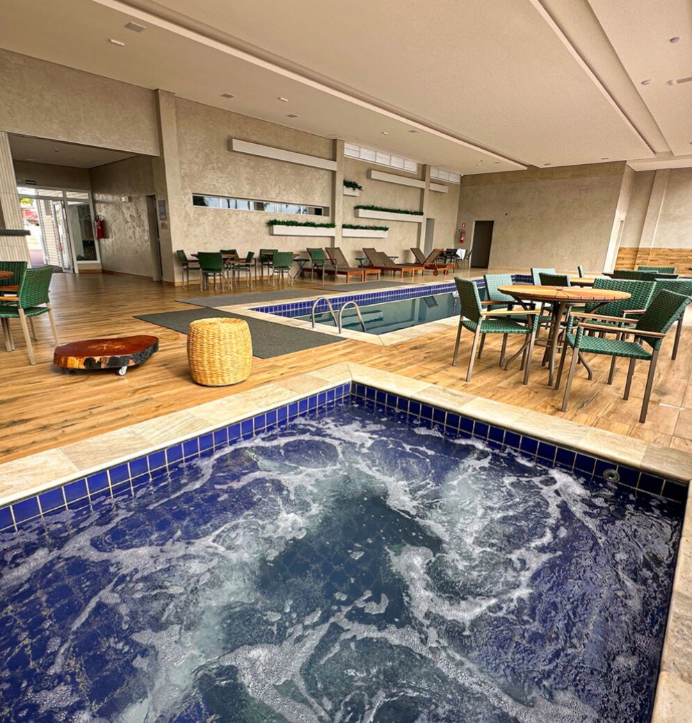 Apartamento e estrutura em Resort com grandes piscinas, spa, ofurôs, sauna, academia, restaurantes, equipe de recreação, cinema, playgrounds e muito mais para você e sua família e amigos aproveitarem o tempo juntos. O resort fica ao lado do grande Thermas Water Park, que conta com diversas atrações para todas as idades, incluindo diversas piscinas aquecidas, toboágua, o maior parque aquático infantil e a maior piscina de ondas da América Latina.