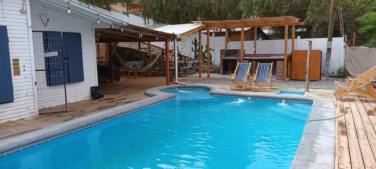 Entspannen Sie sich mit Familie und Freunden an diesem ruhigen und spektakulären Ort im Valle del Elqui. Umgeben von einer magischen Umgebung mit Weinbergen. Es verfügt über direkten Zugang zum Fluss, einen großen Pool, einen Whirlpool, einen Grill und einen gemütlichen Pavillon. Die unübertroffene mystische Energie, das außergewöhnliche Klima, die imposanten Hügel und der Sternenhimmel werden Ihren Aufenthalt zu einer unvergleichlichen Erfahrung machen.