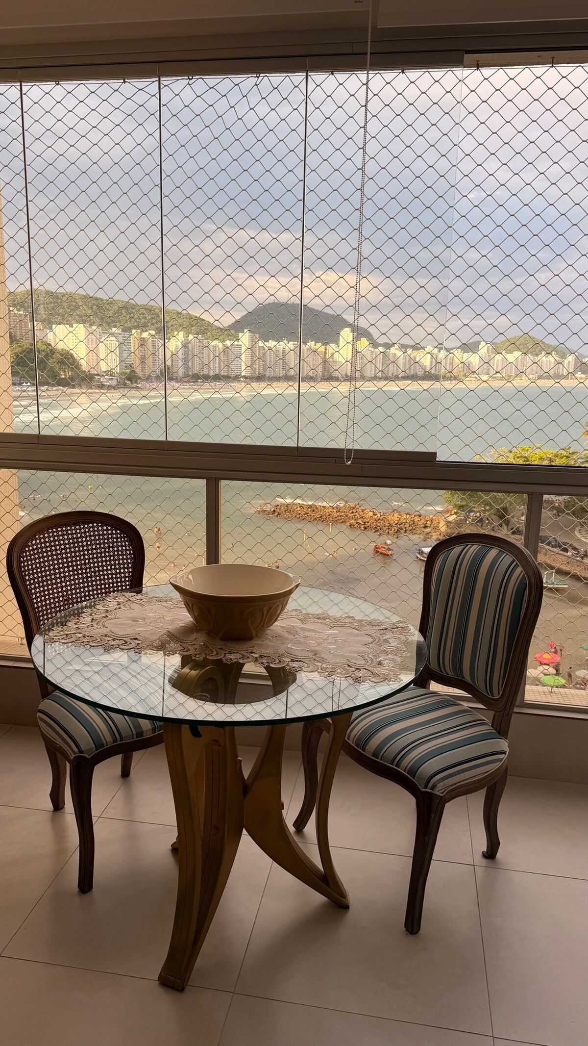 Design-Wohnung mit einzigartiger Aussicht. Von allen Zimmern aus, mit Ausnahme der Badezimmer, hat man Meerblick. Da wir nur 30 Meter vom Wellenbrecher entfernt sind, haben wir das Gefühl, über dem Meer zu sein. Vom Balkon, wo Sie Ihre Mahlzeiten einnehmen können, können Sie die gesamte Küste, Enseada, Pitangueiras und Astúrias sehen.(URL HIDDEN) Sicherlich eine der beeindruckendsten Aussichten in ganz Guarujá. An Wochenenden werden nur Buchungen mit einem Minimum von zwei Übernachtungen akzeptiert und an verlängerten Feiertagen mindestens 3 Übernachtungen.