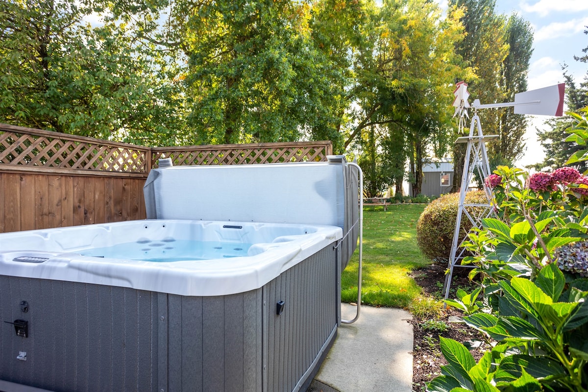 Entspanne dich mit deiner Familie/deinen Freunden auf diesem ruhigen Bauernhof im Township von Langley. Diese schöne Suite liegt 15 Minuten vom Thunderbird Equestrian Centre, dem Campbell Valley Park, vielen Weingütern und mehreren Golfplätzen entfernt. Diese Keller-Suite ist offen und luftig mit 9 Fuß hohen Decken und riesigen Fenstern ausgestattet. Eine schöne, überdachte Whirlpool-Unterkunft steht dir zur Verfügung. Unser Airbnb ist in BC registriert (Registrierung #H463592395)