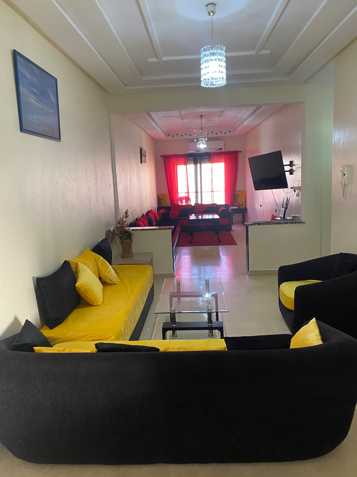 Diese Familienunterkunft in einer sicheren Residenz mit eigenem Parkplatz im Zentrum der Stadt Boulevard Mohammed VI. in der Nähe von allen Geschäften, 150 m vom Strand entfernt, 10 Minuten zu Fuß von der portugiesischen Stadt und Port El Jadida.