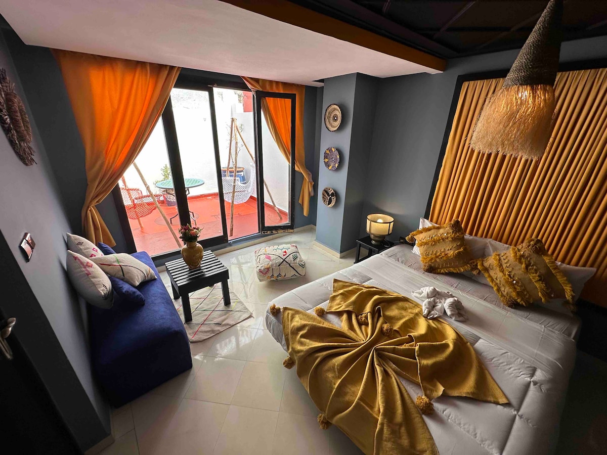 Die Mama Lova 1 Suite bietet ein einzigartiges Erlebnis im Herzen von Essaouira, das traditionelle Eleganz mit modernem Komfort verbindet. Ausgestattet mit zwei geräumigen Zimmern mit Palastbetten und Matratzenauflage, garantiert es Ihnen einen außergewöhnlichen Schlaf. Diese Suite ist mit edlen lokalen Materialien eingerichtet und bietet einen harmonischen und intimen Raum. Genießen Sie natürliche Badeprodukte und ein Gourmet-Frühstück, das auf der Terrasse für einen unvergesslichen Aufenthalt serviert wird.