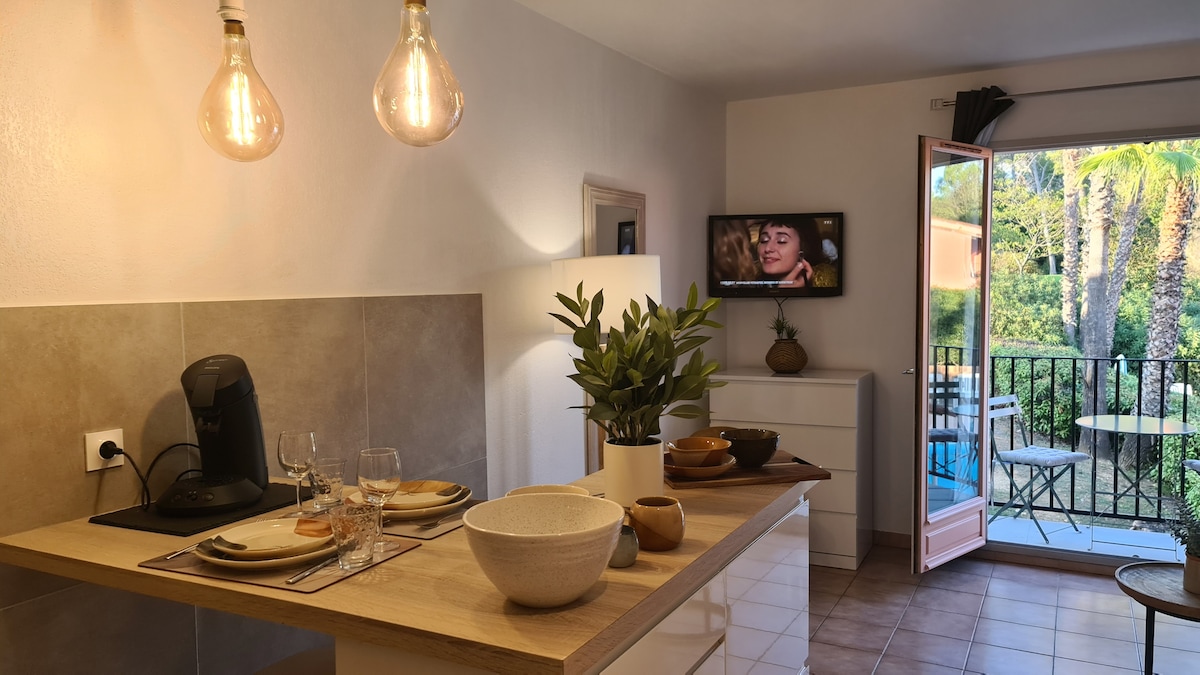 Studio mit Blick auf Esterel & Golf – Klimaanlage, Pool, Parkplatz