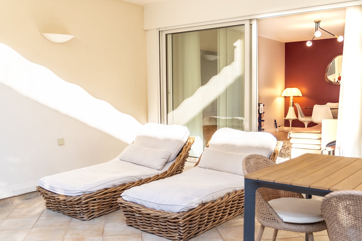 Erlebe in dieser wunderschönen Wohnung in einer kopfsteingepflasterten Fußgängerzone in der Hitze des alten Antibes die rustikale Schönheit und die köstlichen Abenteuer des Dorflebens – während du gemütlichen Luxus genießt, der dich verwöhnt und erfreut. Im unvergleichlichen Côté Safranier genießen Gäste den Komfort, im Herzen der Stadt zu sein, die Ruhe und Stille der Lage in einer Fußgängerzone und den warmen Sand und das klare blaue Wasser der Strände von Antibes – nur einen kurzen Spaziergang von deiner Haustür entfernt.