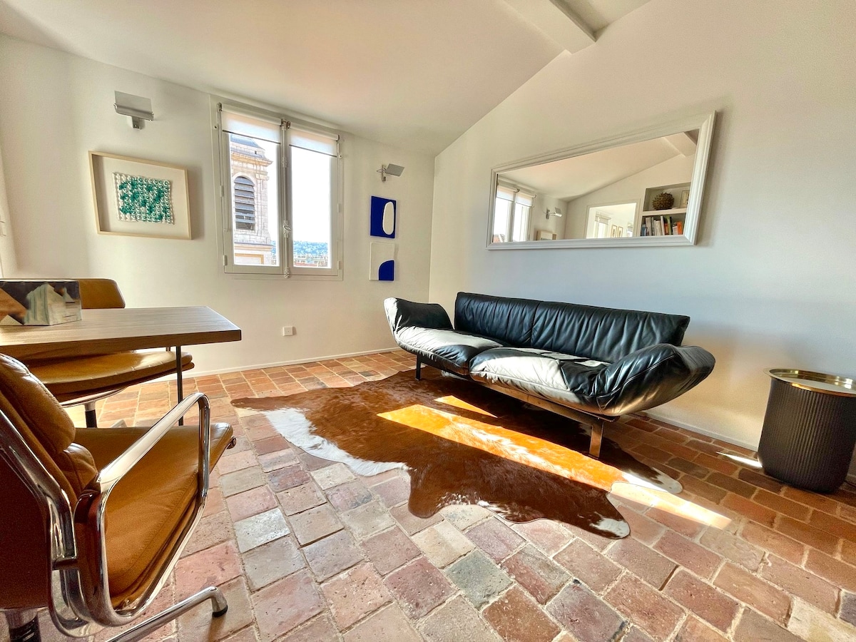 The bright air-conditioned 2-room attic of 45m² with a contemporary and highly-cared design has all the comforts to make your stay in Nice pleasant. Located on the 6th and last floor without elevator of a typical Nice building, it offers a panoramic terrace overlooking the old town, the sea and the hills. Shops, restaurants and bars are nearby. A romantic getaway or with friends is ideal!