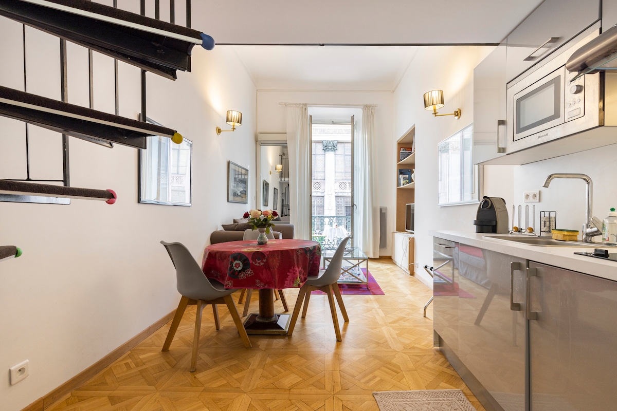 This pretty two-room apartment of 48m2, air-conditioned, attic with a view of the roofs of Old Nice is on the 4th floor WITHOUT elevator of a bicentennial building located in the heart of the Old Town. Equipped with all the comforts to make your stay pleasant: air conditioning, wifi, equipped kitchens, etc. It is a 4-minute walk from the beach and 2 minute from Place Rossetti, it is the ideal place to soak up the unique and typical atmosphere of Nice. A stay with your loved one is ideal