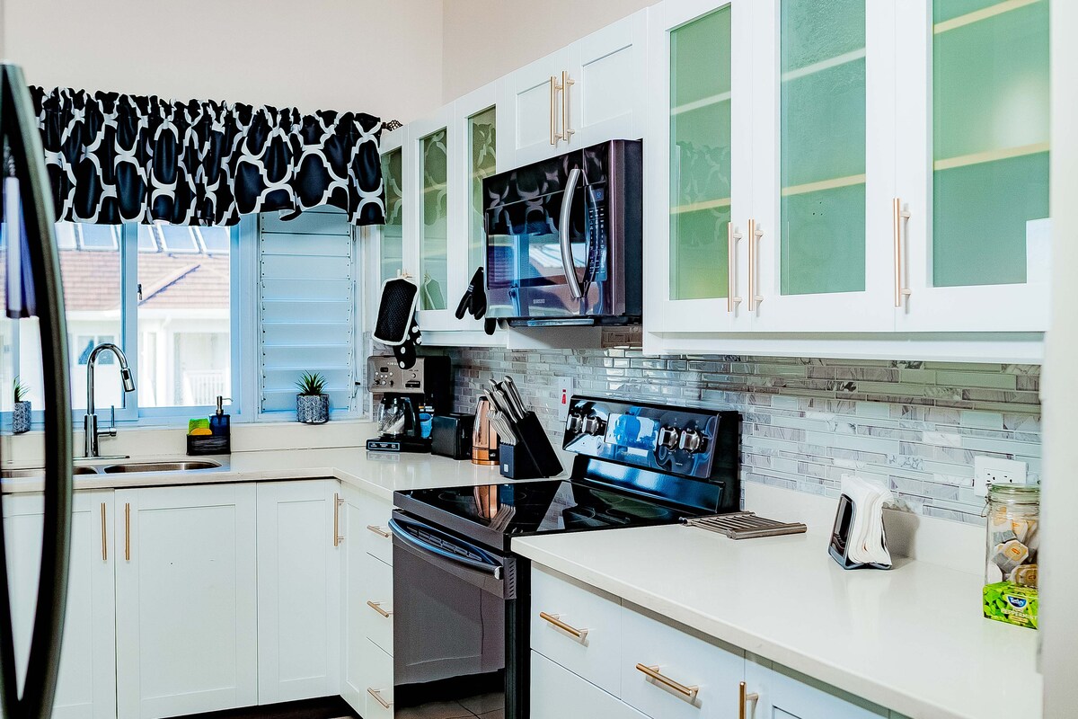 KK's Elite Escape liegt mitten im Paradies. Sie befindet sich in der renommierten Richmond Estates Community, die sich durch natürliche Schönheit und Nachhaltigkeit auszeichnet. Die Unterkunft ist wunderschön mit Palmen und anderer Flora eingerichtet und nur 6 Minuten von einem Privatstrand entfernt. Es ist auch innerhalb von 20 Minuten von mehreren Attraktionen wie Chukka, Dolphin und Plantation Cove und Dunn's River entfernt. Entspanne dich mit der ganzen Familie in dieser friedlichen Unterkunft.