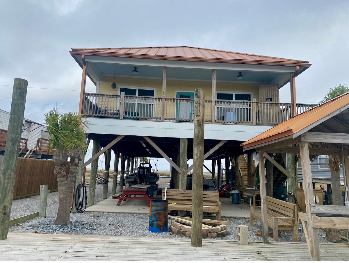 Diese stilvolle Unterkunft ist perfekt für Gruppenreisen. Sie verfügt über den gleichen gleichen Komfort wie zu Hause und dann noch etwas. Das Haus ist sehr geräumig und komfortabel! Die hintere Veranda ist perfekt für Zusammenkünfte im Freien, Grillen oder einfach nur sitzen und den Vögeln lauschen oder Schiffe beobachten, die über den Mississippi-Damm vorbeifahren. Es gibt genügend Parkplätze für Boote jeder Größe oder mehrere Fahrzeuge. Der Hinter- und Vorgarten ist riesig. Die Unterkunft ist nur wenige Minuten von Delta, Buras, Cypress Cove und Venice Marinas & LNG entfernt.