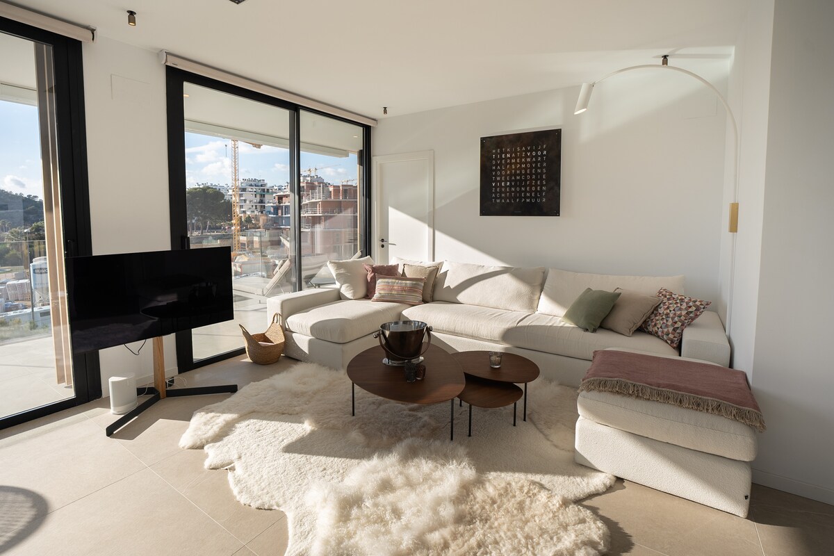 Oasis Love ist ein exklusives Zuhause, das dir ein einzigartiges entspannendes und komfortables Erlebnis bietet. Das Hotel liegt in Strandnähe, umgeben vom monumentalen Berg Torre El Aguiló, ist ideal für Reisende, die Qualität, Ruhe und einen unvergesslichen Aufenthalt suchen. 1 Doppelzimmer mit eigenem Bad Wohnzimmer, Esszimmer mit Doppelschlafsofa ✔️ Voll ausgestattete Küche ✔️ Balkon mit Bergblick ✔️ Highspeed-WLAN. Klimaanlage - ✔️ Heizung ✔️ Pool, Fitnessraum, Paddelplatz