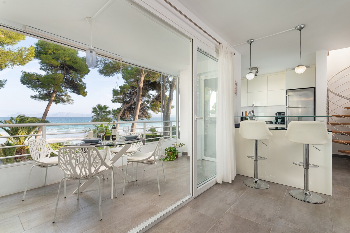 Beautiful duplex in front line to the sea with spectacular views, located in the area of Aucanada, Alcudia. CANOSTRA is an authentic Mediterranean-style, south-facing, renovated fisherman's house located in a very quiet area on the edge of the Ponce cala sea. Our Duplex CANOSTRA is a modern housing, full of light and has breathtaking views over the bay of Alcudia and direct access to the beach.