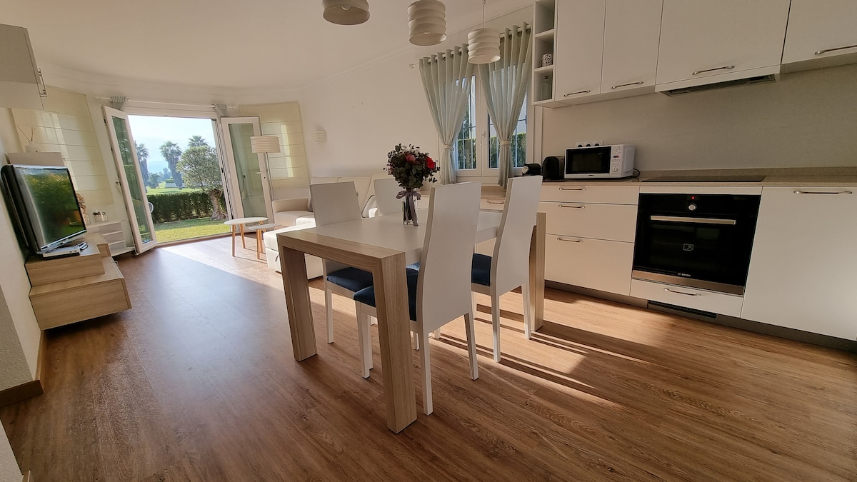 Espectacular apartamento en primera línea en la Playa de cullera. Cuenta una de las mejores vistas de la bahía. El apartamento: - aire acondicionado en todas las estancias. - dispensador de agua fría /caliente. - tv en todas las habitaciones. -acceso directo a playa -wifi Zonas comunes: - 2 Piscinas (una de ellas con barra de bar dentro) - 3 pistas de tenis . - gym. - sala ping pong y billar. - frontón -3 pistas de squas - sauna - zona de jardín - club social CCAA CV- VUT 0059379