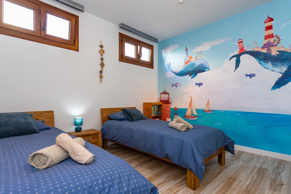 Geräumige Villa (bis zu 8 Personen), privater beheizter Pool, Klimaanlage (optional Heizung und Klimaanlage, zusätzliche Kosten). Fitnessraum, Spielzimmer mit Billardtisch und PS4. Kostenloses WLAN, Sat-TV, Stereoanlage, Safe. Grill, Esszimmer im Freien, Solarium, Hängematten, Minigolf, Privatparkplatz. 4 Schlafzimmer, 3 Badezimmer, voll ausgestattete Küche, Wohnzimmer, Hauswirtschaftsraum. Der Keller verfügt über einen unabhängigen Zugang über eine Außentreppe.
