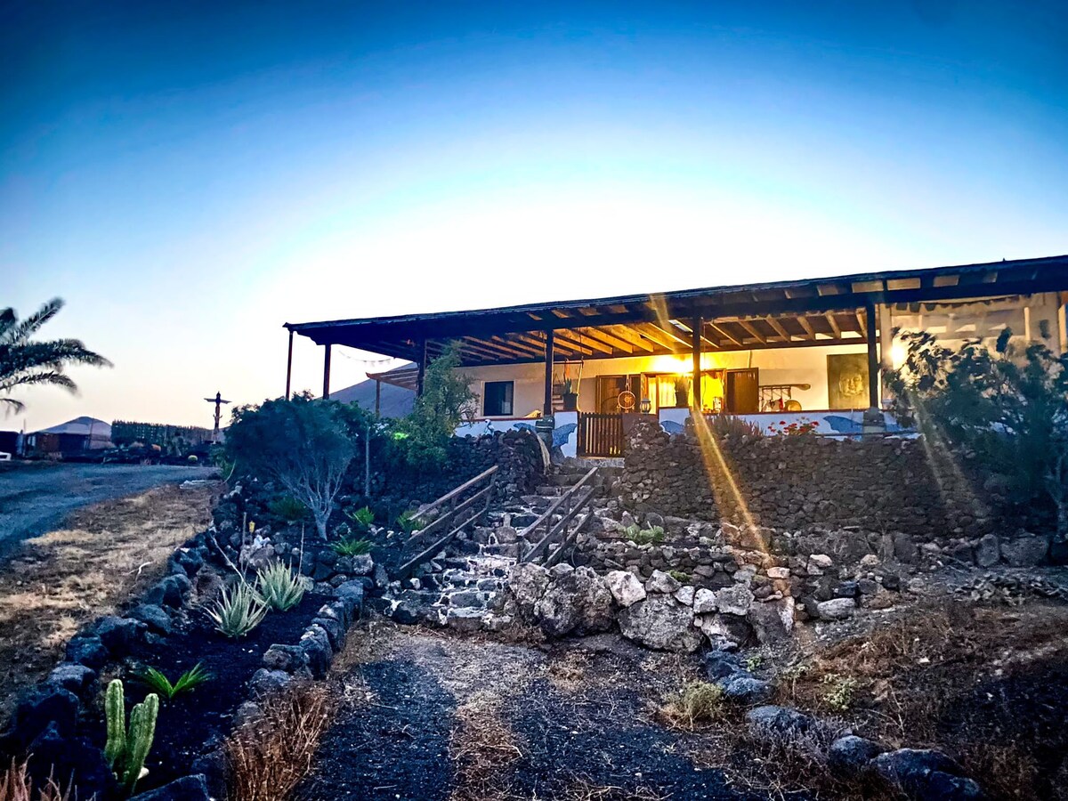 This spacious studio apartment is part of Villa NaJoSa, located on the hill in secluded small village Las Brenas, far from the tourists and nightlife in a very safe, friendly neighborhood, 15 min drive from golden beaches of Papagayo, 5 min drive to black beach, 10 min drive to Playa Blanca. Huge private garden offers stunning views of the Atlantic ocean as well as Timanfaya Volcano. Amazing sunsets! It is wheelchair accessible with parking directly in front of the private entrance.
