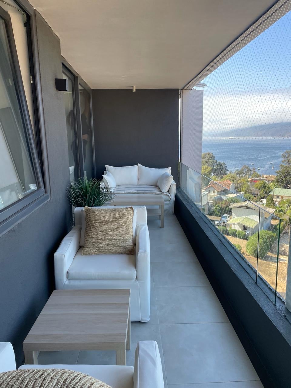 Genieße Ruhe und Stil in dieser eleganten Wohnung mit 2 Schlafzimmern und 2 Badezimmern, die mit luxuriösen Möbeln und einer geräumigen Terrasse mit einem eingebauten Grill und einem unvergleichlichen Meerblick ausgestattet ist. Nur 5 Gehminuten vom Strand entfernt, ist es perfekt für einen Kurzurlaub. Das Hotel liegt in einer exklusiven Eigentumswohnung mit einem modernen Design, das den Charme der chilenischen Küste bewahrt. Es bietet einen Spielraum, angelegte Grünflächen mit Wanderwegen, Sitzbereichen, einen Pool und eine Feuerstelle im Freien.