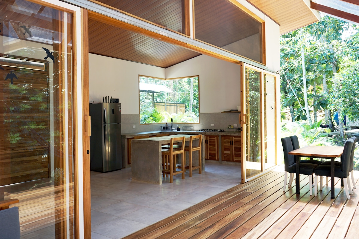 ROMANTIC RAINFOREST EXPERIENCE Featured as one of Airbnb’s most-loved jungle homes! A private jungle retreat with your own plunge pool, surrounded by wildlife and lush rainforest. Casa del Bosque is made for slow mornings, lazy swims, and the sweet sound of howler monkeys in the trees. Just minutes from Caribbean beaches, but miles from anything rushed. Expect peace, privacy, and the occasional visit from a sloth or toucan.
