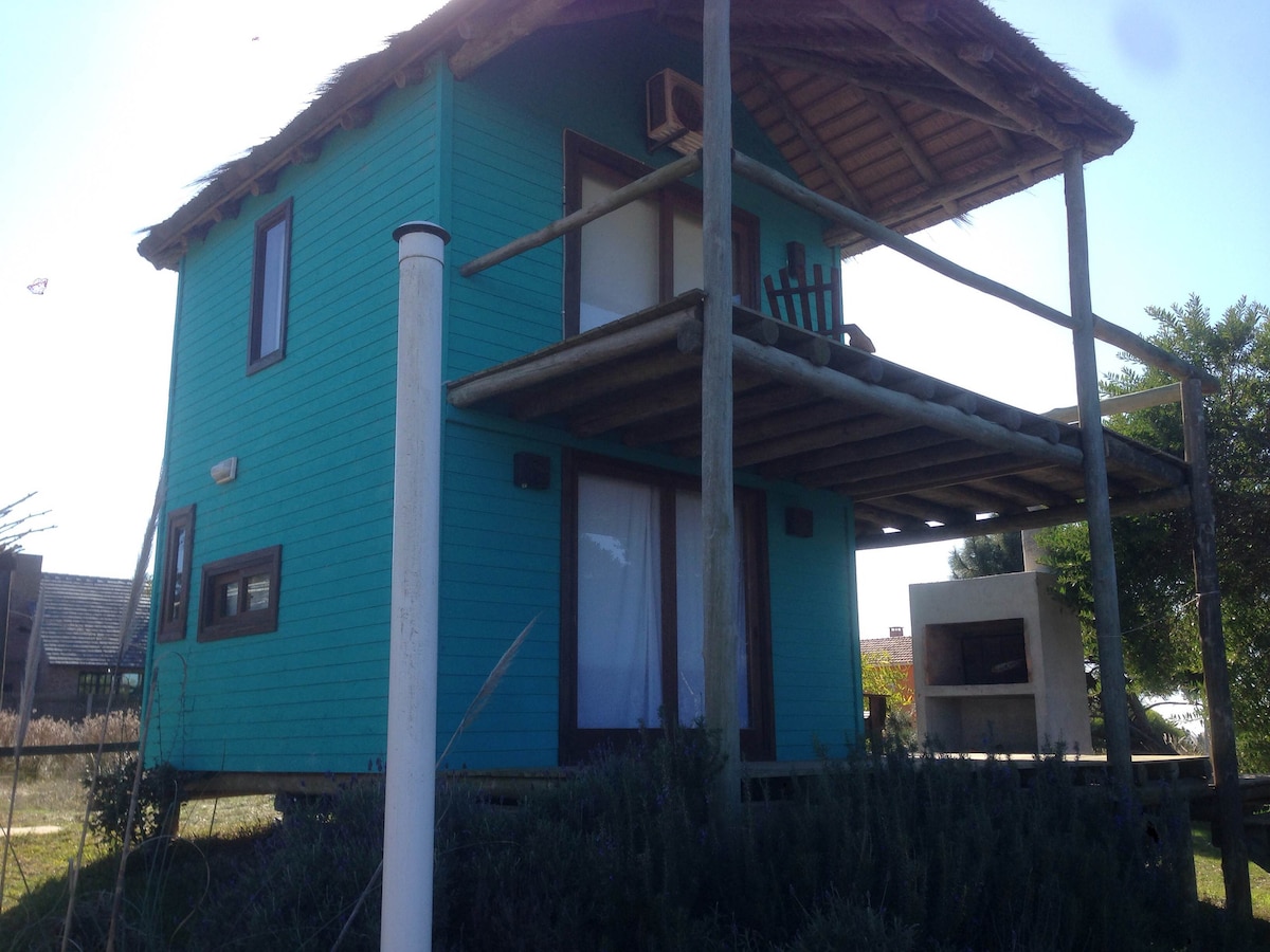 Charmante Hütte für 2 Personen in Punta del Diablo, oben auf dem Flusshügel, nur 4 Blocks vom Meer mit einer ausgezeichneten Aussicht entfernt, verfügt über ein Badezimmer und eine voll ausgestattete Küche, eine Klimaanlage und einen Grill. keine Bettwäsche (Bettwäsche oder Handtücher).