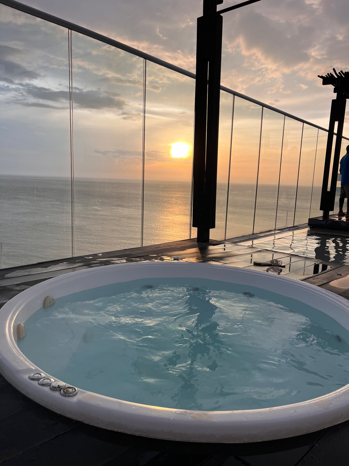 Moderne, komfortable Hütte, gute Ausstattung, große Fenster, Terrasse mit Whirlpool und ausgezeichneter Meerblick, nur 200 Meter vom Strand entfernt. Es verfügt über zwei Zimmer mit Klimaanlage und Deckenventilator, zwei Badezimmer, eine Küche, ein Esszimmer und einen Arbeitsbereich mit Schreibtisch. TV-Service, Netflix, Ethernet und kostenfreies WLAN. Essen kann zu Hause angefordert werden. Gelegen in einer ruhigen und sicheren Gegend, einfacher Zugang zum öffentlichen Verkehr. Der Transportdienst wird nach vorheriger Ankündigung bezahlt.