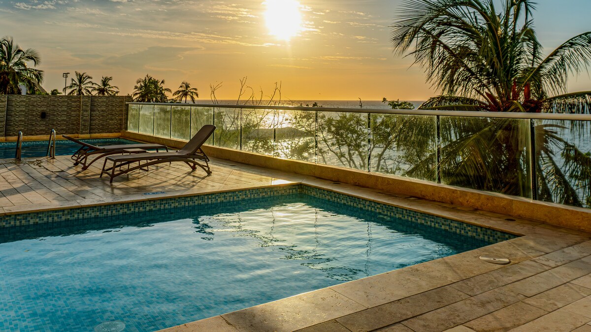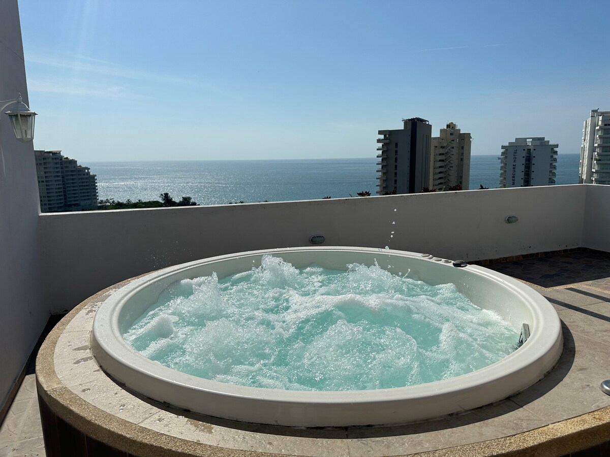 ausgezeichnete neue Wohnung mit Meerblick, Pool, Jacuzzi, privatem Parkplatz in Rodadero - Santa Marta