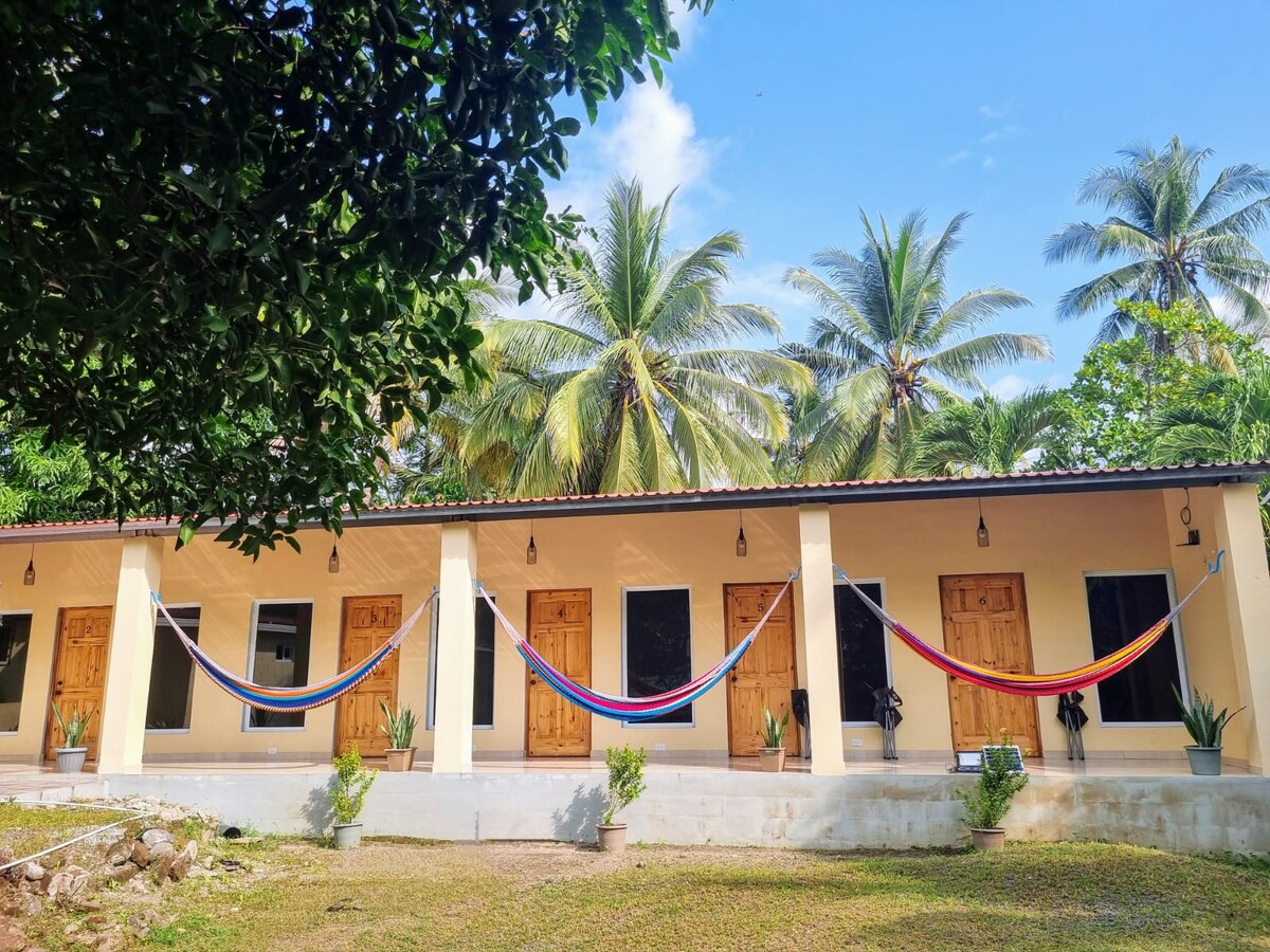 Komm und entspann dich an unserem tropischen Fluss mit Meerblick. Wache auf und gehe morgens surfen, dann schau dir dein Lieblingssportspiel in unserer Sportbar an, während du köstliches salvadorianisches Essen genießt. Unsere Zimmer sind komfortabel und sauber, mit Klimaanlage, Fernsehern mit Netflix, WLAN und eigenen Badezimmern. Wir haben ein Full-Service-Restaurant vor Ort, das Frühstück, Mittag- und Abendessen bietet, und eine Sportbar, in der du mit all deinen Sportarten Schritt halten kannst und die lokale und internationale Biere und Cocktails bietet. Das Frühstück ist inbegriffen.