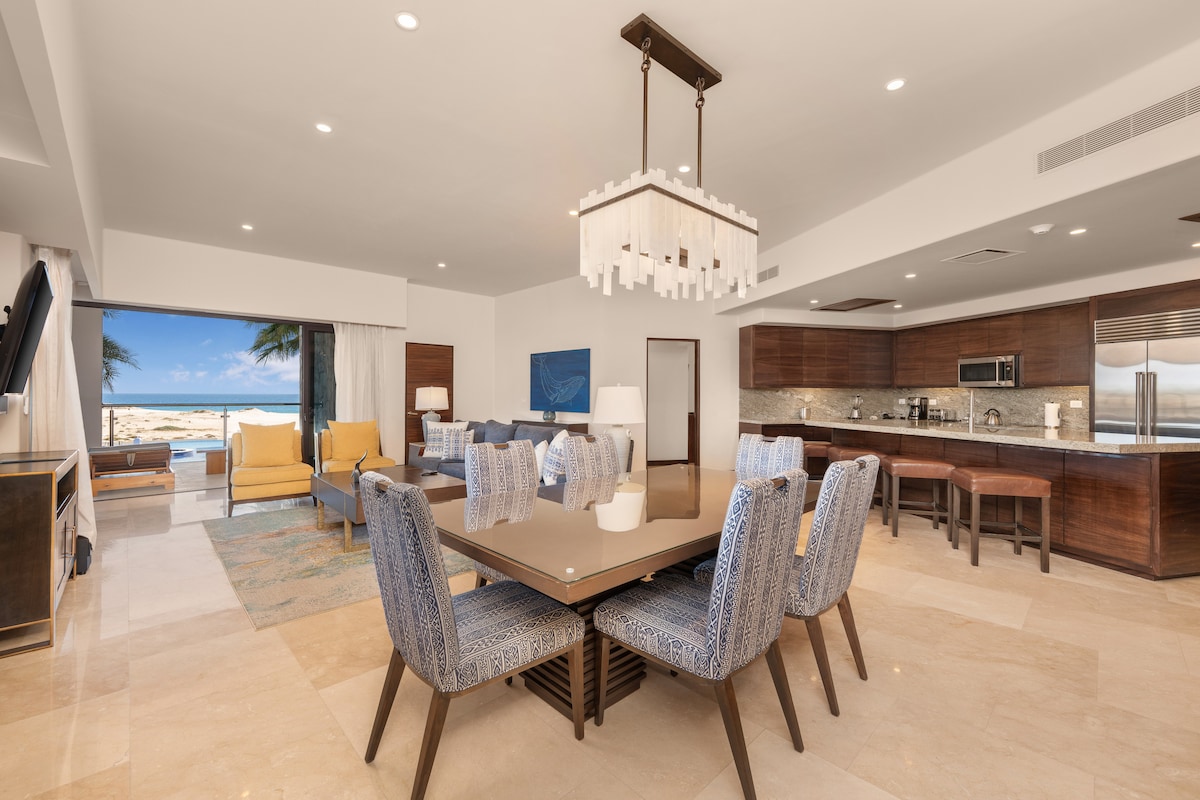 CLOSE YOUR EYES AND LET THE OCEAN SOUNDS SURROUND YOU, WATCH THE STARS, AND LET LOVE FULFILL ALL YOUR WISHES Incredibly stylish beachfront honeymoon suite that will take your breath away! Listen to the waves crashing on the shore from your private balcony, enjoy your morning coffee, or delight yourself with the expansive and unobstructed Ocean views in this luxurious and oversized studio located on the most beautiful, private, and secluded beach of Cabo, neighboring the Waldorf Astoria Hotel.