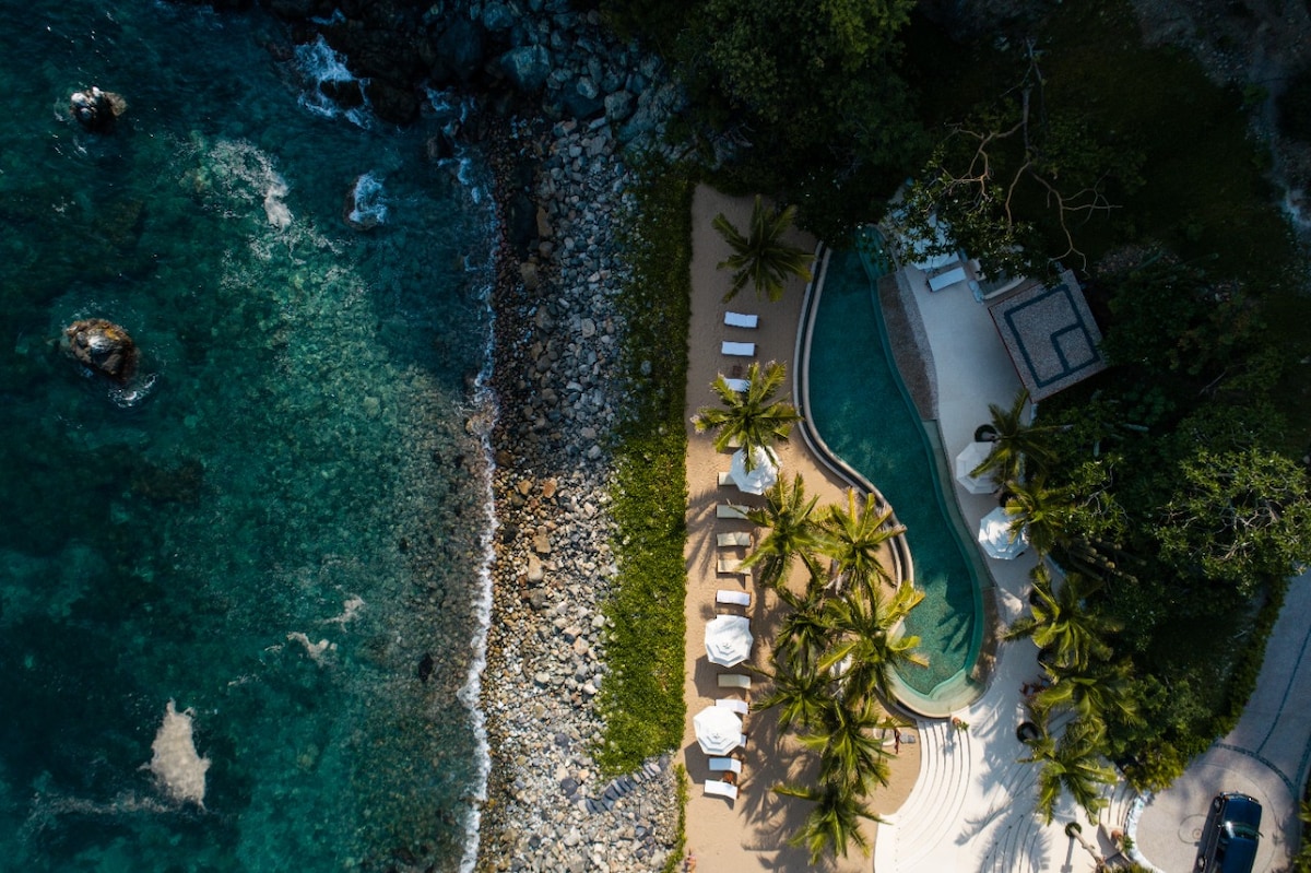 Entdecke den exklusiven Charme der Villen Kau Kan am besten Strand von Zihuatanejo. Jede unserer 8 Villen wurde von ihrem Eigentümer individuell gestaltet und zeigt einzigartige Stile und persönliche Details. Jede Villa verfügt über ein geräumiges Schlafzimmer und 1,5 Badezimmer und bietet die perfekte Mischung aus Komfort und Eleganz. Für größere Gruppen sind auf Anfrage mehrere Einheiten verfügbar. Genieße einen gemeinsamen Pool auf der Dachterrasse und direkten Strandzugang. Villas Kau Kan ist der ultimative Aufenthalt für Paare, die einen ruhigen Rückzugsort suchen.
