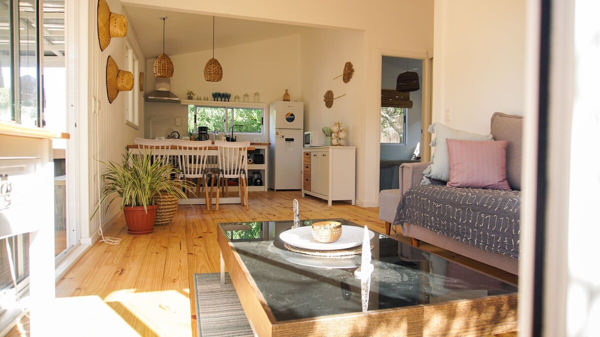Strand- und Landhaus, umgeben von magischer Natur. 13 km von La Pedrera und 21 km von Cabo Polonio entfernt. Es verfügt über 2 Schlafzimmer, 2 Badezimmer, Küche, Wohnzimmer, Außengrill, Waschküche und große Terrassen mit Tischen. Mit Meerblick vom Wohnzimmer, der Küche und beiden Schlafzimmern. Vom Wohnzimmer aus können Sie den Sonnenaufgang über dem Meer sehen und vom Esszimmer aus den Sonnenuntergang auf dem Land.