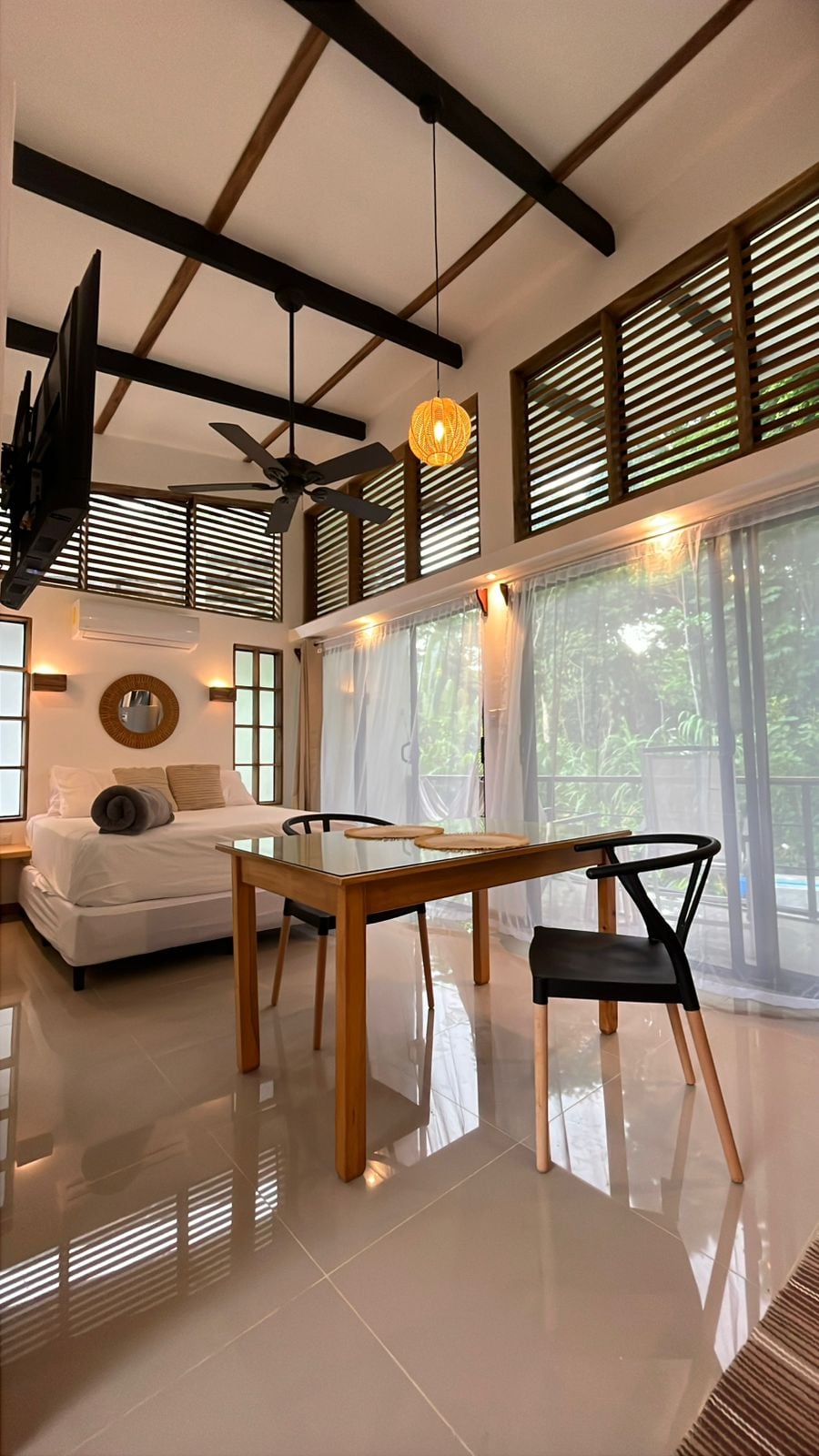 Ubicado en la planta baja de una torre de 13 metros, este espacio invita a bajar el ritmo y reconectar con lo esencial Rodeado de naturaleza y construido en madera, el estudio recibe la luz de forma suave a lo largo del dia, creando una atmosfera calida, intima y tranquila. Cada rincon esta pensado para descansar, pero tambien para sentir: textura, la luz, los sonidos de la selva. El espacio forma parte del universo TZI, donde la luz se transfoma en experiencia a través de piezas hechas a mano.