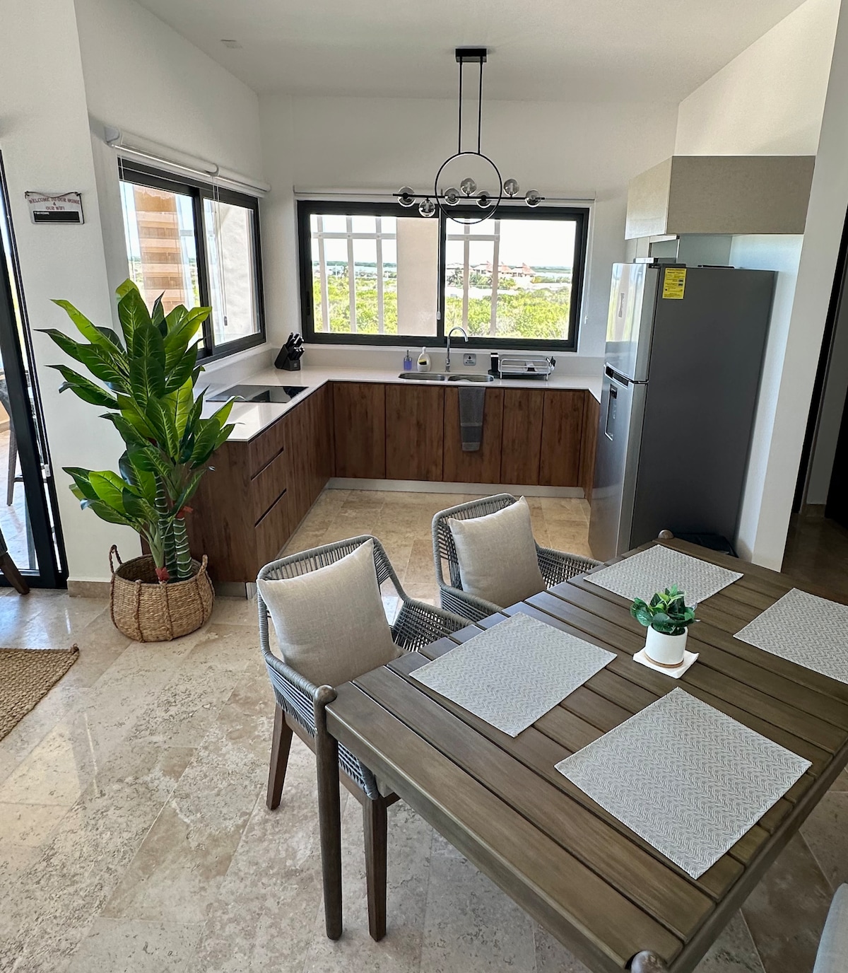 Luxuriöse Villa mit "Tulum"-Flair, mit luxuriösen Oberflächen und Möbeln. Perfekt für einen Urlaub am Meer. Genießen Sie die Terrasse und einen kleinen Pool, um sich abzukühlen, wenn Sie aus dem Meer kommen. Mache ein Nickerchen in einer Hängematte mit einer spektakulären Aussicht vom Hauptschlafzimmer und genieße den Klang der Natur. Wir berechnen keine Stromkosten und haben einen Notstromgenerator, sodass dir nie der Strom und die Klimaanlage ausgehen, die wir übrigens überall haben :)