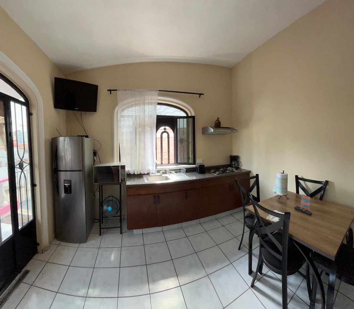 Hermoso departamento para 2 personas con una recámara cama queen, baño, sala, cocina integral,A/A y ventilador de techo. Se encuentra ubicado dentro de un edificio, está en el piso número 3, cuenta con circuito cerrado, áreas comunes, servicio de auto lavandería (costo de extra) y lo mejor es el mirador en el último piso o el Roof garden, donde podrás apreciar de la bella vista de la bahía y los hermosos atardeceres.
