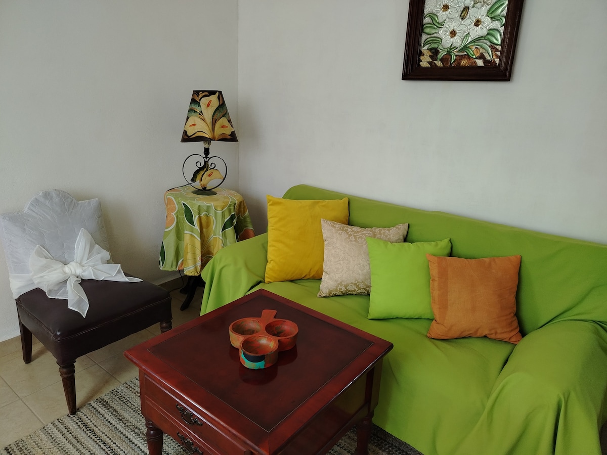 Apartamento para uso completo del huésped, sin escalones, grande, limpio, área de cocinar, en colonia familiar céntrica y tranquila con fácil traslado a todos los puntos del puerto , a 8 min en carro de la playa más cercana, 12 min en carro de dist. de malecón, 10 centro y aeropuerto, cuenta con A/C, Wifi de 40 mgbs, televisor con apple tv de 42", netflix, sofacama, donde estacionar tu vehículo fuera del apartamento, agua caliente conectada al calentador solar. Todos los servicios.