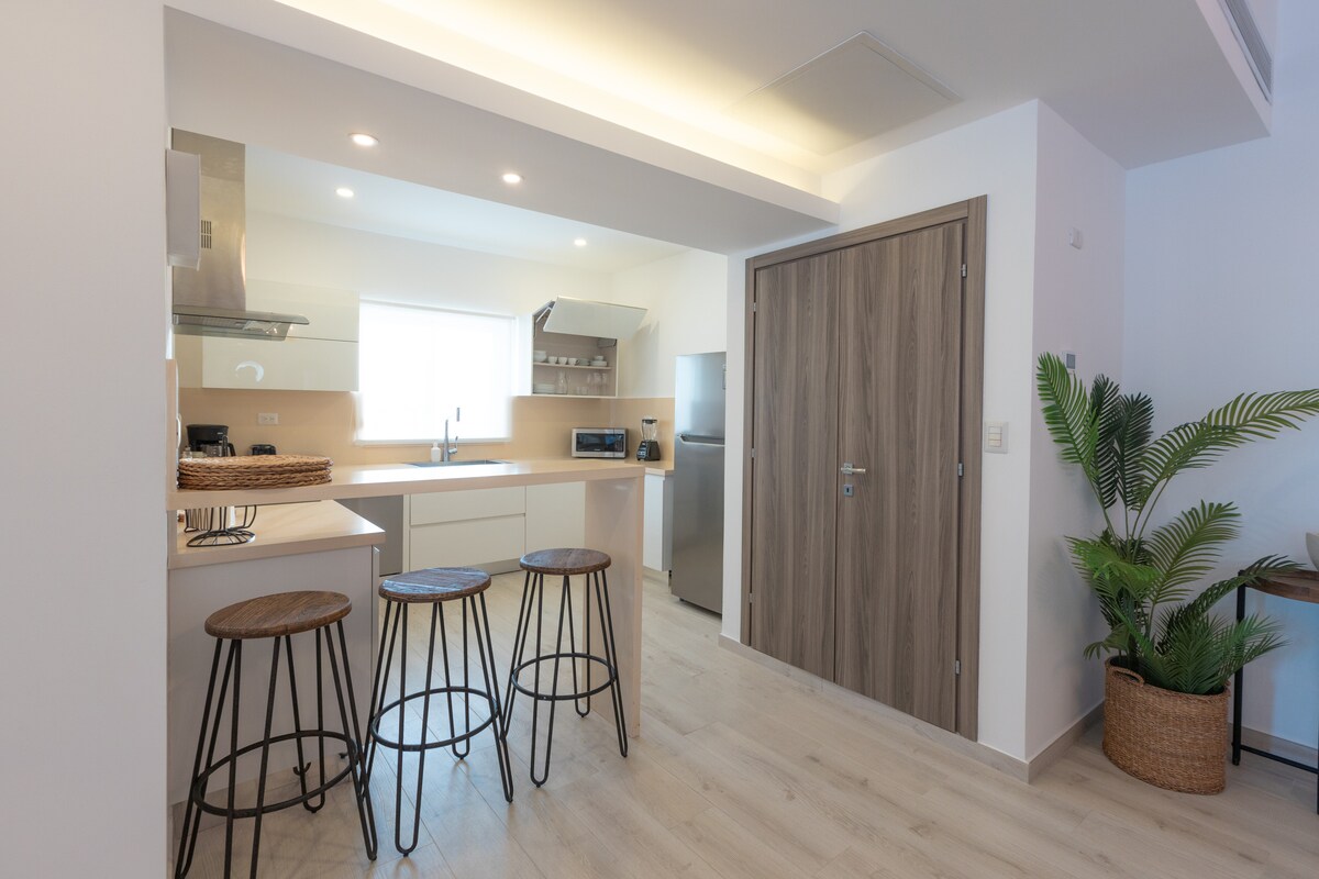 Espectacular Apartamento de lujo con piscina privada en la terraza. Un nuevo concepto de apartamentos en Punta Cana que te proporcionará confort, privacidad y seguridad para pasar tus vacaciones. Habitaciones amplias, cocina totalmente equipada, muebles de diseño, wifi de alta velocidad, check in online con la ultima tecnología. Sin duda una nueva experiencia para vivir Punta Cana de una forma diferente. A 3 minutos caminando de la Playa !!