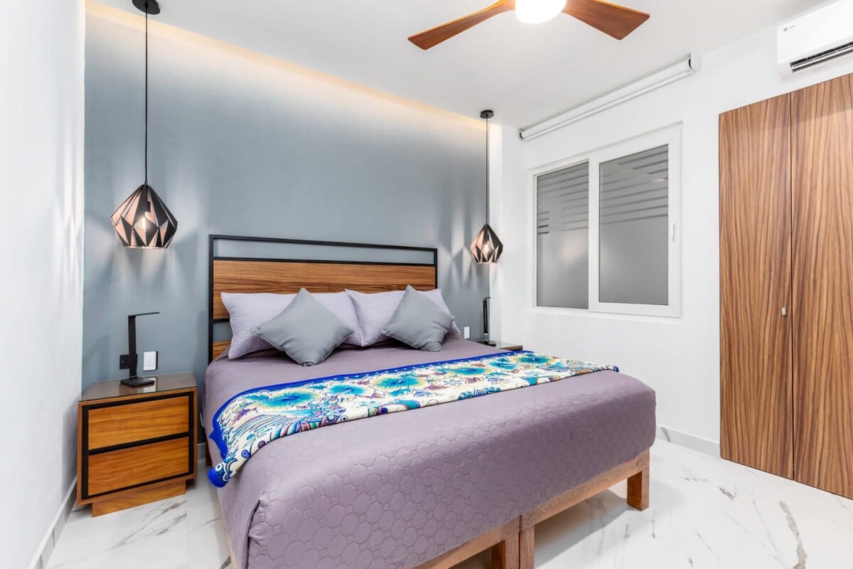 Tauche ein in Luxus und Komfort in unserer spektakulären Strandwohnung mit zwei Schlafzimmern und zwei Badezimmern für bis zu sechs Gäste in Bolongo, Punta Mita. Das luxuriöse Apartment verfügt über ein Kingsize-Bett im Hauptschlafzimmer, das direkten Zugang zum Balkon und ein eigenes Badezimmer im Inneren hat. Das zweite Schlafzimmer mit zwei Queensize-Betten im Etagenbett. Alle Kinder zählen als Gäste unabhängig vom Alter, einschließlich Kleinkindern.