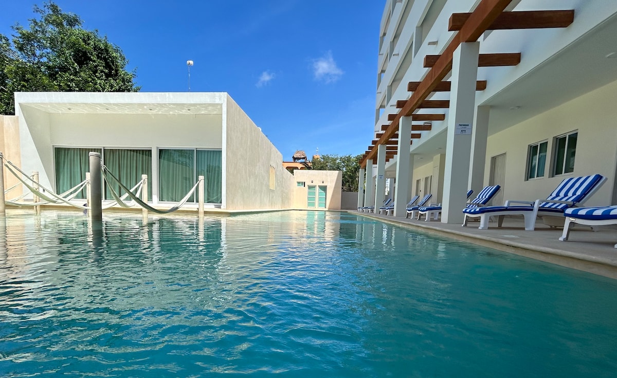 A 11 minutos a pie de Playa Xcalacoco, una de las mas hermosas de la Riviera Maya, disfruta de una placentera estancia en Itzaé Apartment; Fraccionamiento el Cielo, Zona Diamante de Playa del Carmen. Cómodo, relajante con alberca y jacuzzi a la puerta! ✔️Hamacas dentro de la alberca y en jardines. ✔️Roof Top con otra alberca, Jacuzzi y Gimnasio ✔️Disfruta comiendo frente al mar en los restaurantes y bares de hoteles 5 estrellas que estan a unos pasos del alojamiento ✔️5a Avenida a 10 min. en cocche