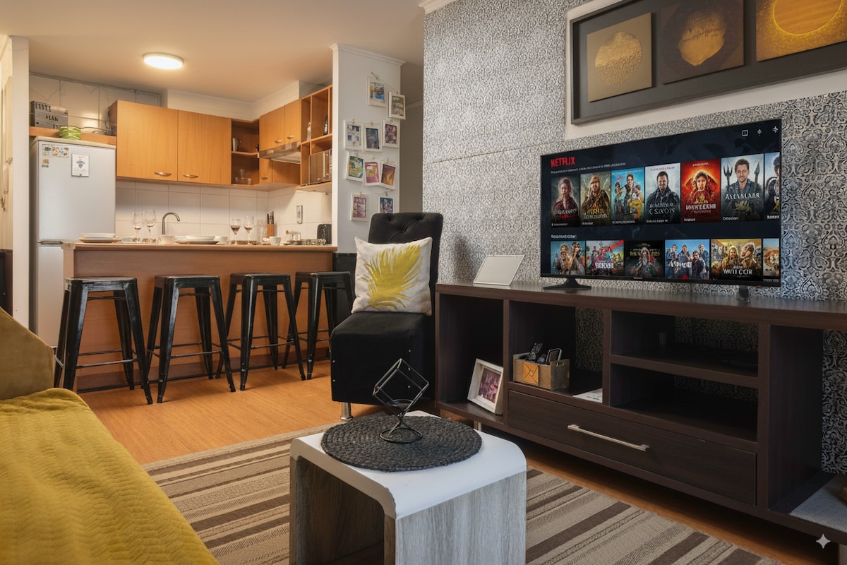 Das Hotel liegt im Viertel Bellas Artes (Santiago Centro), sauber und komfortabel, nur wenige Schritte von der U-Bahn-Station Bellas Artes entfernt. Sehr ruhig, da es auf die Calle Mosqueto blickt, die sehr wenig Verkehr hat. Klimaanlage kalt/warm mit 12.000 BTU. • Elektronisches Schloss • Küche, Kühlschrank, Mikrowelle, Kaffeemaschine, Toaster, Besteck, Töpfe usw. • Waschmaschine/Trockner • Bettwäsche 220 Fäden • 2 43-Zoll-Fernseher mit Netflix • 600Mbps Glasfaser-Internet mit WLAN • Bügeleisen • Feuerlöscher und Rauch-/Kohlenmonoxidmelder.