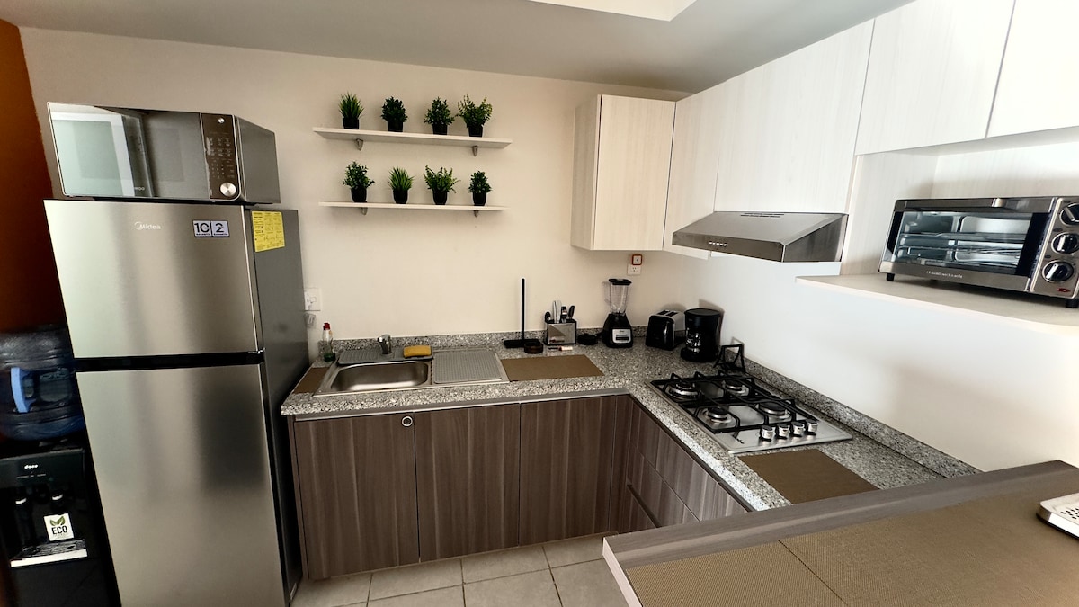 Genieße einen komfortablen Aufenthalt in unserer Wohnung mit 2 Schlafzimmern und Schlafsofa, während du die Stadt besuchst. Diese Unterkunft bietet eine entspannte Atmosphäre, ein Badezimmer, eine Küche, eine Terrasse und einen Parkplatz. 5 Minuten vom Guadalajara-Sand, Zoo, magischem Dschungel, Huentitan Canyon, Oblatos, Unabhängigkeitsplatz. in der Nähe des Jalisco-Stadions, Akron, Innenstadt von Guadalajara, 30 Minuten vom Flughafen entfernt. In der Nähe findest du auch Geschäfte, Geschäfte und Apotheken in der Nähe.
