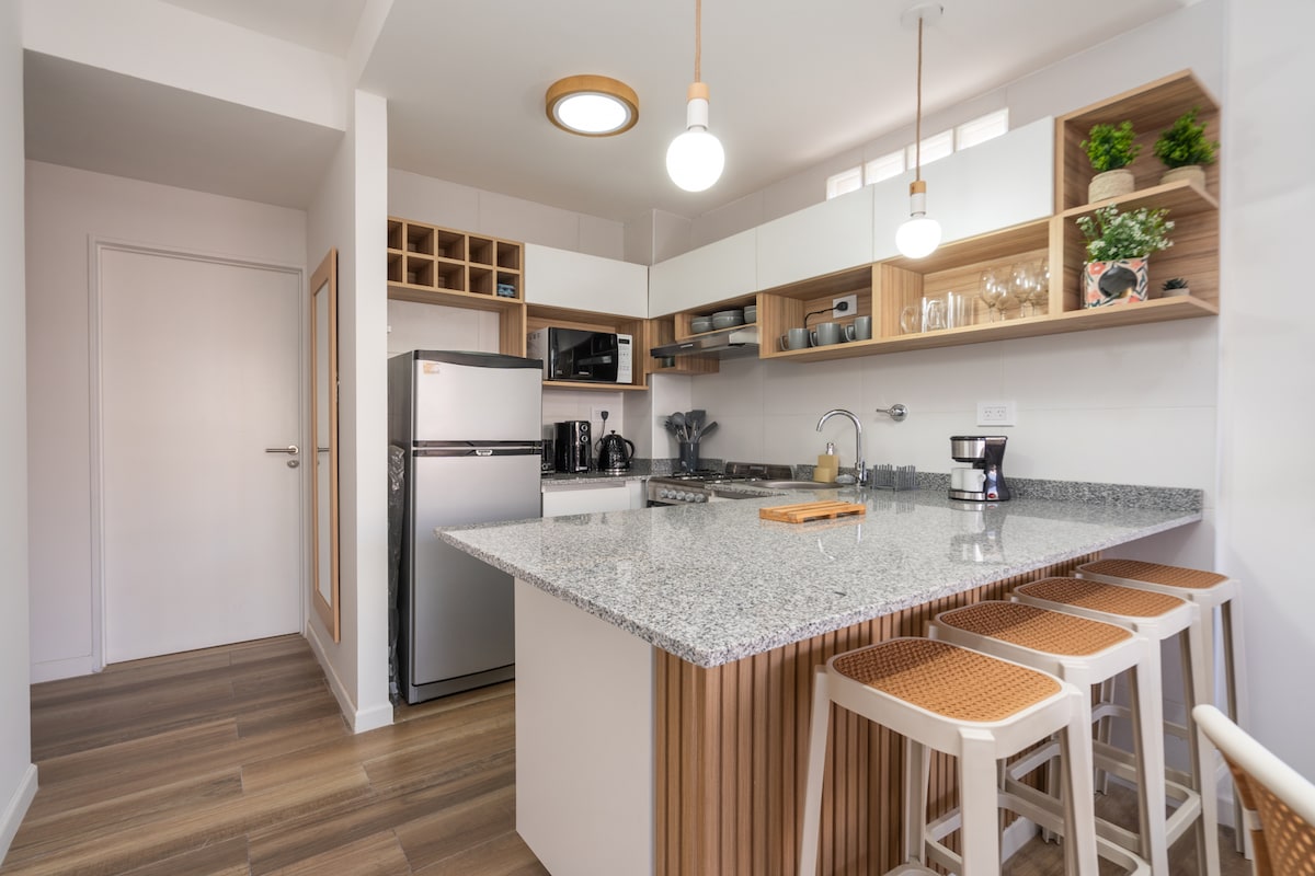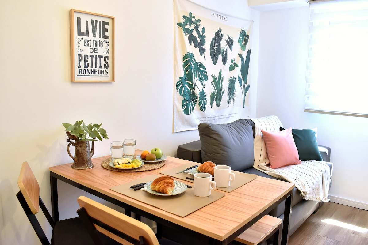Helles, ruhiges und geschmackvoll gestaltetes Studio in der Nähe der Plaza Armenia – dem lebhaften Herzen von Palermo Soho. Genieße einen luftigen Raum mit schnellem 500 Mb/s Internet, ideal für Arbeit oder Streaming. Bemerkenswert ruhig und erholsam – perfekt für einen tiefen Schlaf – mit Verdunkelungsrollos, die für völlige Dunkelheit sorgen. Es gibt auch Platz für leichte Übungen oder Yoga, mit optionaler Ausrüstung auf Anfrage. Geh nach draußen zu Cafés, Restaurants, Geschäften, Yoga, Tango und dem Wochenendkunsthandwerksmarkt.