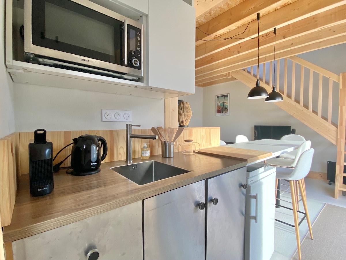 Dies ist ein altes Nebengebäude, in dem Apfelwein hergestellt wurde, komplett renoviert auf 36 m² im Erdgeschoss mit einem schwimmenden Zwischengeschoss. Die Unterkunft ist unabhängig und bietet allen modernen Komfort eines aktuellen Hauses mit allen nützlichen Geräten. Der private Park von mehr als 5000 m² ist für Reisende zugänglich, die auch die Ziegen und Schafe in ihrem Gehege sehen können.