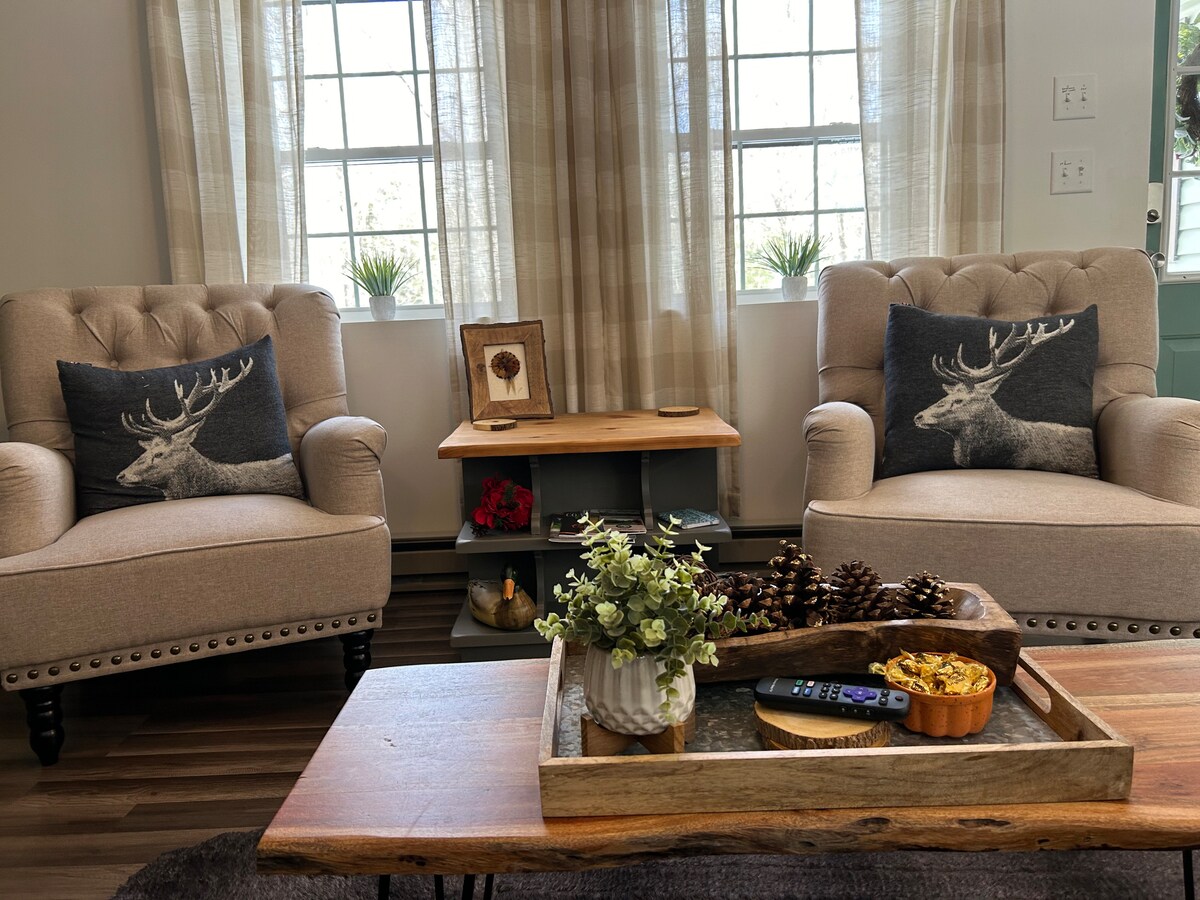 Cabin vibes & luxury touches make the ⇛Cottage in the Woods⇚ an amazing place for our guests! Come escape to the Cottage nestled deep in the woods in a peaceful and quiet area. Connect with nature watching roaming deer and woodland views from the 4 season sunroom. Enjoy an evening fireside at the firepit with friends and family. *YoutubeTV included* We invite you to our Cottage with cabin vibes & luxury touches. 90min from NYC and 2hrs from Philadelphia. Welcome to the Pocono Mountains!