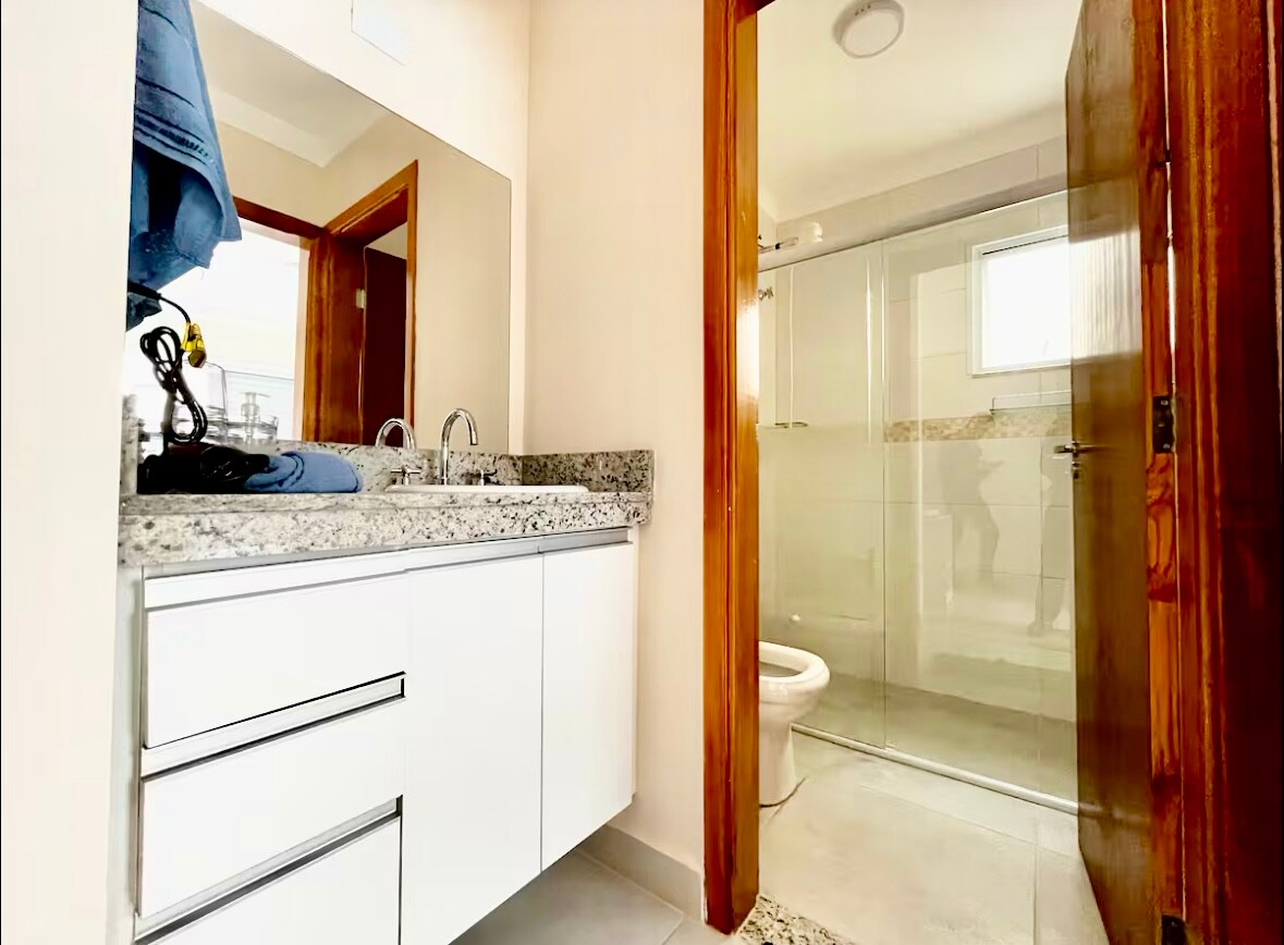 Dieses neu gebaute Haus in einer ruhigen Gegend, nur 10 Minuten vom Zentrum von Poços de Caldas entfernt, wurde mit Liebe entworfen, um bis zu 6 Personen bequem unterzubringen. Mit 2 Schlafzimmern, jedes mit eigenem Bad und Schreibtischen für Homeoffice-Arbeit, sowie einem Schlafsofa im Wohnzimmer. Dieser Raum bietet flexible Unterkünfte für einen gemütlichen Aufenthalt. Geräumiges Wohnzimmer, voll ausgestattete Küche, Waschraum, Grill und 2 Garagenplätze. Das Haus vereint Raffinesse, Funktionalität und Eleganz.
