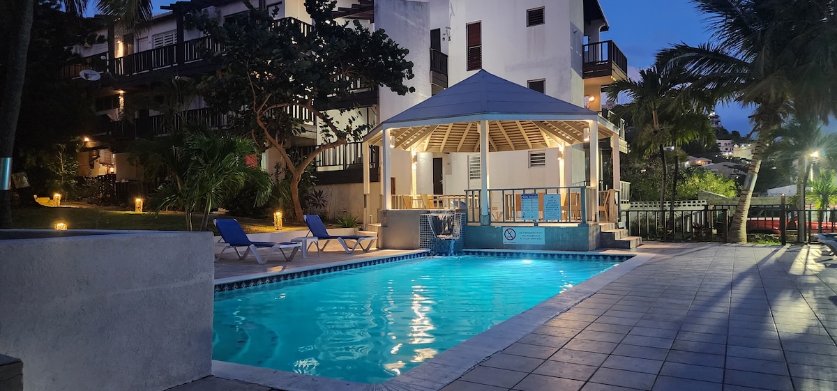 Genieße deinen Aufenthalt in dieser ruhigen Mieteinheit. Auf einem Hügel mit Blick auf das Karibische Meer ist dieser ruhige Ort der perfekte Ausflug, egal ob geschäftlich oder privat! Die neu renovierte Wohnung verfügt über mehrere schnellaufladbare USB-Steckdosen, eine warme/kalte Dusche und eine Küchenspüle, eine Kaffeemaschine, Küchenutensilien, Besteck, Klimaanlage, Kühlschrank, Herd, Backofen, Mikrowelle, Smart-TVs. Es wird empfohlen, dass Mieter ein Fahrzeug haben/mieten.