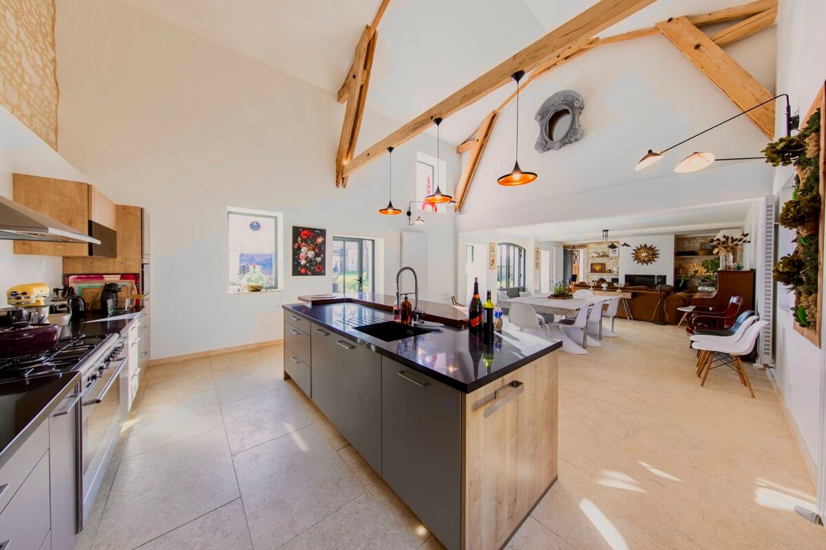 Envie et besoin d'une pause loin du tumulte urbain ? Pensée et entièrement rénovée pour en faire un cocon chaleureux, la grange Bienvenu est un havre de paix à 30 minutes de Poitiers. A votre disposition: Salle de cinéma avec son dolby atmoz, écran 2x3 , sauna, équipements sportifs, baby foot, jeux d'arcade, table de massage, terrasse privative. Profitez également des promenades au cœur du village avant de vous retrouver pour un verre autour du bar ou pour une partie de jeux de fléchettes.